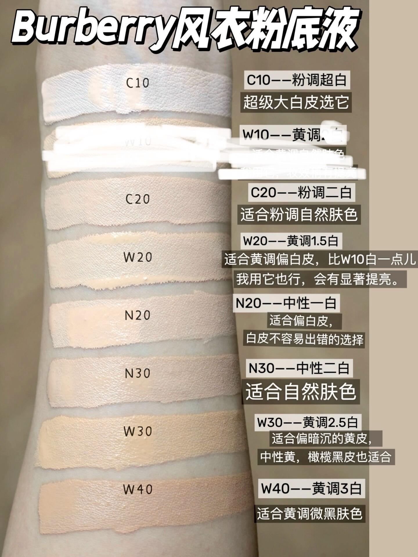 Burberry🧥风衣粉底,超全选色攻略 谁懂啊,burberry风衣粉底我都拥有两年了,才出试色[抽泣R]。这次换个方式根据肤色给你们选色建议:不知道你们喜不喜欢。 (图片里的W10拍错了,是后期处理的,大家仅做参考,后期重拍的话会更新) 🧥【超级大白皮】选,C10——非常白的一个色号,白中带一点儿粉。 🧥一般的【白皮】可以选——N20——不太容易出错的一个偏白皮色号, 🧥【中性调和粉调偏白】的肤色可以选——C20——粉调二白色 🧥超白的【黄皮】可以选——W10——这个色非常白,超级大白皮可以选它 🧥偏自然的【黄皮】可以选——w20——我用这个色刚刚好,有一点提亮。这个色跟dw的1W1最接近。 🧥【中性自然肤色】可以考虑——N30——适合自然皮 偏暗沉的【黄皮】可以选——W30——黄调2.5白,橄榄黄皮也可以用。 🧥【明显暗沉肤色】可以选——W40——这个色其实没我想象中的暗,接近dw的1w2色号。 如果是小麦肤色、黑皮就要往更暗的色号选了。(我是没想到8个色号还没试到黑皮色号)中间的几个色号色阶拉得不是很大,比较接近。 🧥这款我还挺喜欢的。妆效很好看,是偏自然的柔雾妆效,粉很细腻,也很贴脸,我干皮上脸也不怎么拔干。 质地是偏速干的奶霜型,上脸记得分区快速上妆。 持久度不错,而且带妆久了也不容易斑驳浮粉,可以保持优雅~ 遮瑕度可薄可厚,整体妆效还是偏自然。 #无滤镜粉底液测评 #底妆测评 #粉底液测评 #持妆 #持妆粉底液 |