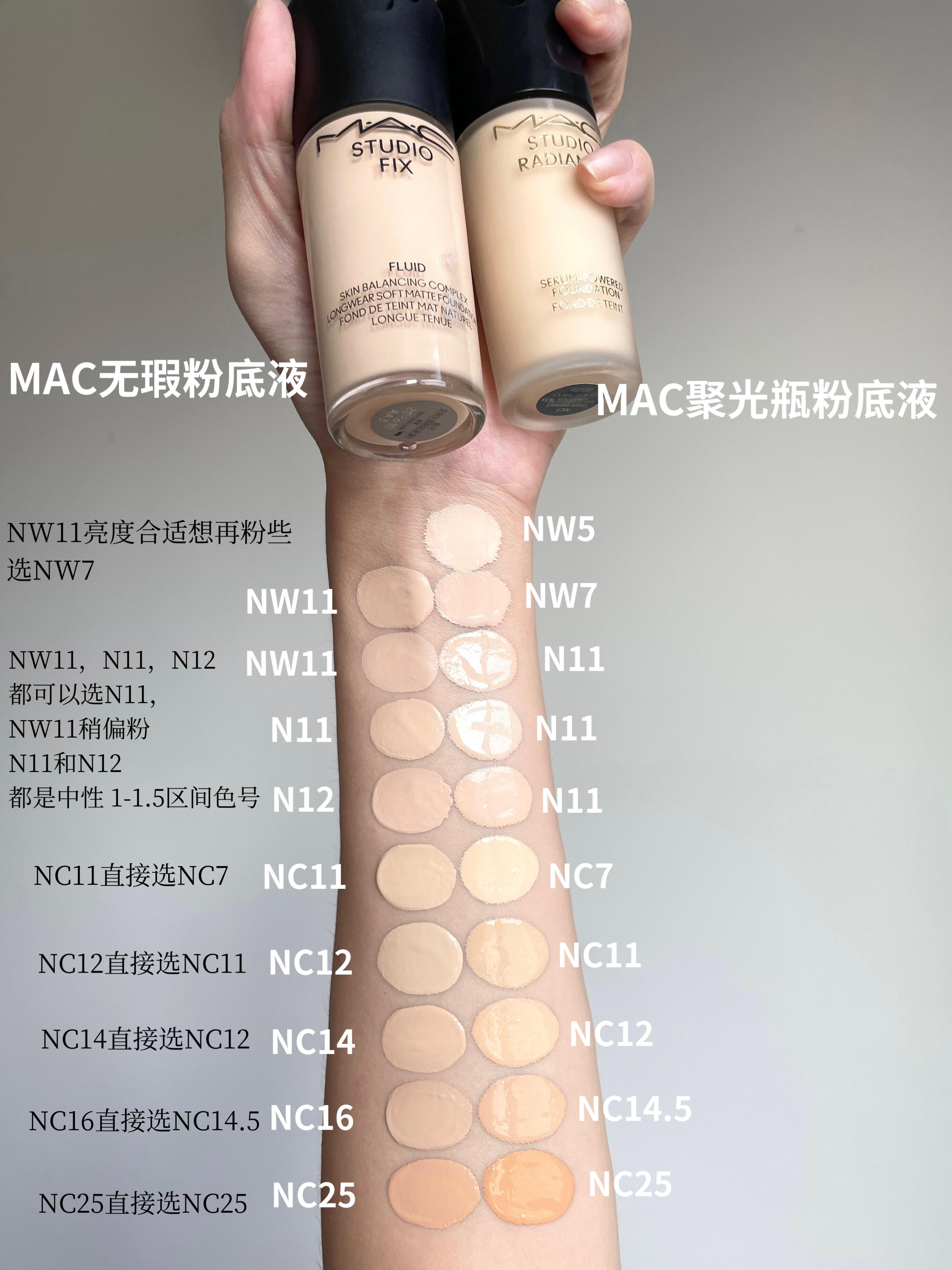 我X粉底用X色号,MAC聚光瓶粉底液选什么色? MAC聚光瓶粉底液,是我这2年超爱用的秋冬混干皮粉底液,进了2年的年度爱用,质地和色号都特别适合我,像是为我量身定制一样 很有质感的水光感,滋润质地"水润油"平衡的特别好,对于我来说滋润度刚好,不拔干也不油润,清透高遮瑕,高持妆很贴肤,一按没有手指印,对毛孔有一定修饰作用,不挑皮肤状态,我下巴有一块皮肤屏障受损,经常卡粉,聚光瓶一点不卡,2年从来没翻过车,感觉满足了我底妆所有需求 色号就更喜欢了! NC12几乎和我的肤色一模一样,特别融肤 NC11是在融肤的基础上明显提亮,是黄调的白皙,挺漂亮的,上脸显得脸很干净,不发橘粉,从早白皙到晚 这次新上了4个新色 其中3个是罕见色号,充分尊重各肤色人群,审美多元 真正做到了从超白皮粉白皮 到黄黑皮橄榄皮,无论什么肤色,都能找到合适的色号 调色审美是融肤级贴合,选对色号能和肤色完全融合,调色特别准确,准确到可以当做辨别肤色教学模板的程度,真正做到了还原皮肤原生好气色 粉调 NW5,NW7,NW11 中性调 N11,N12 黄调/橄榄调 NC5,NC7,NC11,NC12,NC14.5 黄调 NC25,NC30,NC40 选色建议是根据融肤级贴合的审美给的,就是上脸和你的肤色一模一样,几乎没色差,喜欢提亮明显点的,就往上推选白一个色号就行,不会假白 图片内所有色号都是我和朋友一起手臂试+上脸试过后给出的选色建议,通过手臂试色的方式呈现,我觉得这样更清晰直观,可以放心参考! #MAC聚光瓶粉底液 #天猫金妆奖 #如何辨别你的肤色 #干皮粉底液 #混干皮粉底液 |