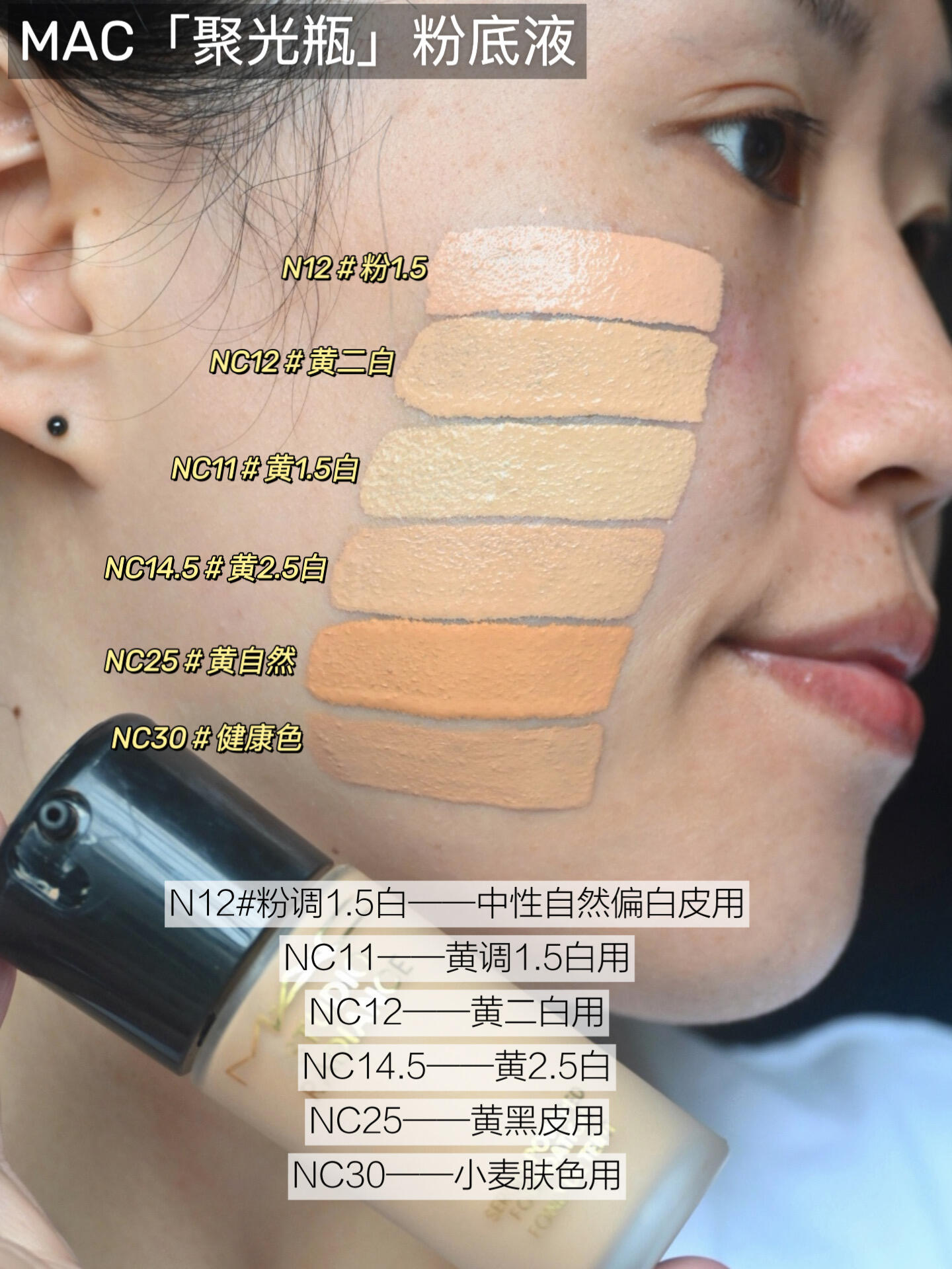 新色来袭❗️MAC聚光瓶粉底液全色号试色测评 MAC家针对干皮出的聚光瓶来新色了,赶紧搜喽起来给大家试色一下,新出的几个色号真的是弥补了色号不够白的短板了 🅾️聚光瓶色号参考🅾️ 🔥新色NW5#白皙色——适合冷白皮,很白皙的一个颜色 🔥新色NW7#粉一白——适合偏白皙肤色,带一些粉调 🔥NW11#粉二白——适合粉调二白或者粉调自然偏白 🔥新色NC5#橄榄一白——很适合橄榄白皮,想要比n11更白的效果可以考虑它 新色NC7#橄榄二白——橄榄1.5-2白适合,黄白皮也可以用,会有白皙提亮的效果 🔥N11#中性一白——中性偏白皮用,黄皮用也不违和 ⚜️N12#粉调1.5白——中性自然偏白皮用 ⚜️N18#粉调自然——中性自然偏暗 皮 ⚜️NC11——黄调1.5白用 ⚜️NC11.5——黄调1.25白用 ⚜️NC12——黄二白用 ⚜️NC14.5——黄2.5白 ⚜️NC17.5——黄调偏自然用 ⚜️NC25——黄黑皮用 ⚜️NC30——小麦肤色用 质地是很水润的精华质地,上脸的妆效属于水润服帖的妆效,微微的光泽感,跟定制无瑕的妆效截然不同,所以一个针对干皮,一个相对针对混油皮 因为质地水润所以上脸以后整体是非常轻薄的一个状态,贴合肌肤,能够让皮肤跟粉底很好的融合,有种天生妈生皮的好气色感,整体下来不会显得厚重 持妆力也不错,整体持妆一整天再来透气感很好,基本不会有暗沉的问题,依旧服服帖帖 #粉底液试色 #MAC聚光瓶粉底液 #MAC聚光瓶粉底液色号 #无滤镜试色 #无滤镜粉底测评 #底妆测评 |