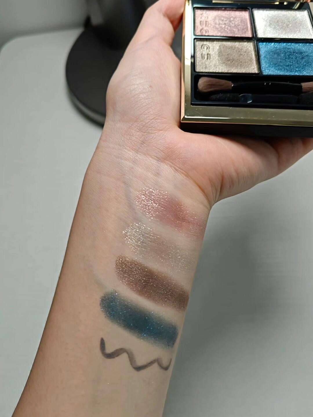 火树银花的冬日雪夜 SUQQU 131六花 六花在日语里意为雪花,作为2023年圣诞限定,这盘也非常有冬日氛围。整盘都是冷色,但每个颜色都带有细碎金闪,清冷与热闹并存。 (p1,p 2 ,p3是窗边自然光试色;p4是室内白灯台灯下试色,仅展示光泽,色彩请参考前三张) 粉质: 左上 右下:比较松散的珠光色,都含有闪片,左上闪片更丰富 右上:珠光碎钻闪,比较松散,有轻微底色 右下:摸起来有磨砂感的珠光色,抹开后表面有偏光闪,容易飞粉 单色色彩详解 左上:灰粉珠光色加粉金碎闪 右上:含五彩颗粒的银闪,浅银灰底色 左下:橄榄灰棕色,带冷金细闪 右下:靛青色,表层有蓝色偏光闪片 画法: 1.手指取左上,铺色在上眼皮前中段,范围是双眼皮褶皱及以上2~3mm,叠两层。余粉带过整个卧蚕 2.海绵棒小头取右下,上在上眼皮后半段,范围不超过双眼皮,轻微晕染边缘 3.重复上一步,直到眼尾睫毛根部颜色饱和 4.小号门牙刷混合下排两色,贴紧下眼睑加深下至,余粉加深整个下眼睑,睫毛根部 5.套盒中的灰蓝色眼线笔拉出眼尾眼线,觉得眼影粉色不明显可重复第1步 6.右上闪片打散铺在眼中,余粉提亮卧蚕 杂谈: 1.这盘全盘都是灰调重的冷色,虽然是闪片质地,比较清透,但也更推荐给偏冷皮。 2.右下靛青蓝色不是很正的蓝调,画的时候要小心使用,它容易飞粉且底色发青灰,大面积使用会有淤青感。 3.这盘的套盒里还包括一支海绵头眼线液笔和一支管状腮红膏。眼线液笔是灰调很重的雾霾蓝色,和眼影盘很搭。腮红膏是中性偏暖的肉粉色,在橄榄皮脸上发橘,且质地略厚重,我不太喜欢 4.这盘的眼影质地和SUQQU其他的眼影不一样,在破盘取色后,摸的地方会氧化发灰,不太美观但不影响正常使用 希望以上介绍对你有帮助,也希望大家都能在彩妆的世界里玩的开心,下次见 #眼影 #眼影推荐 #眼影试色 #彩妆分享 |