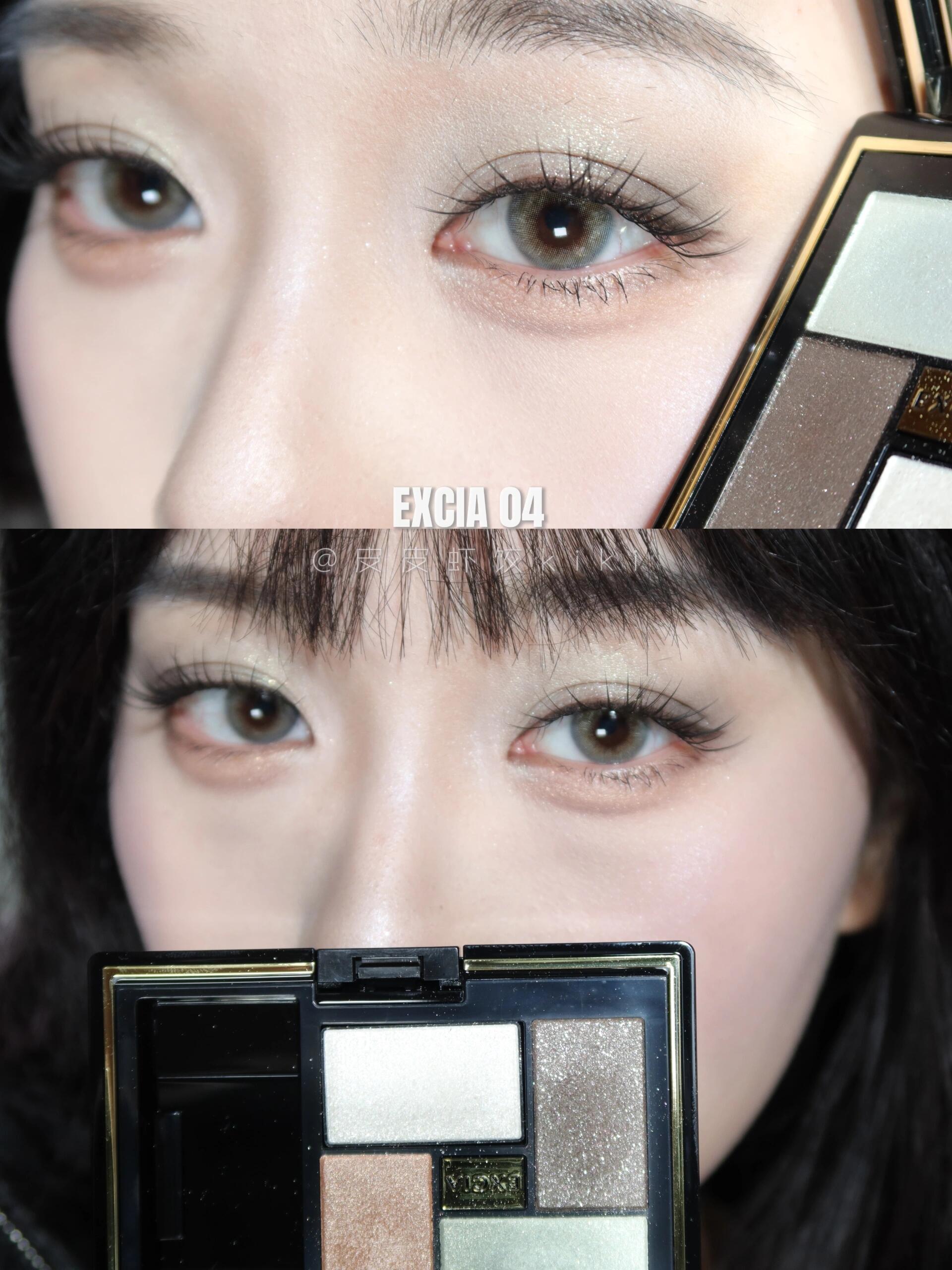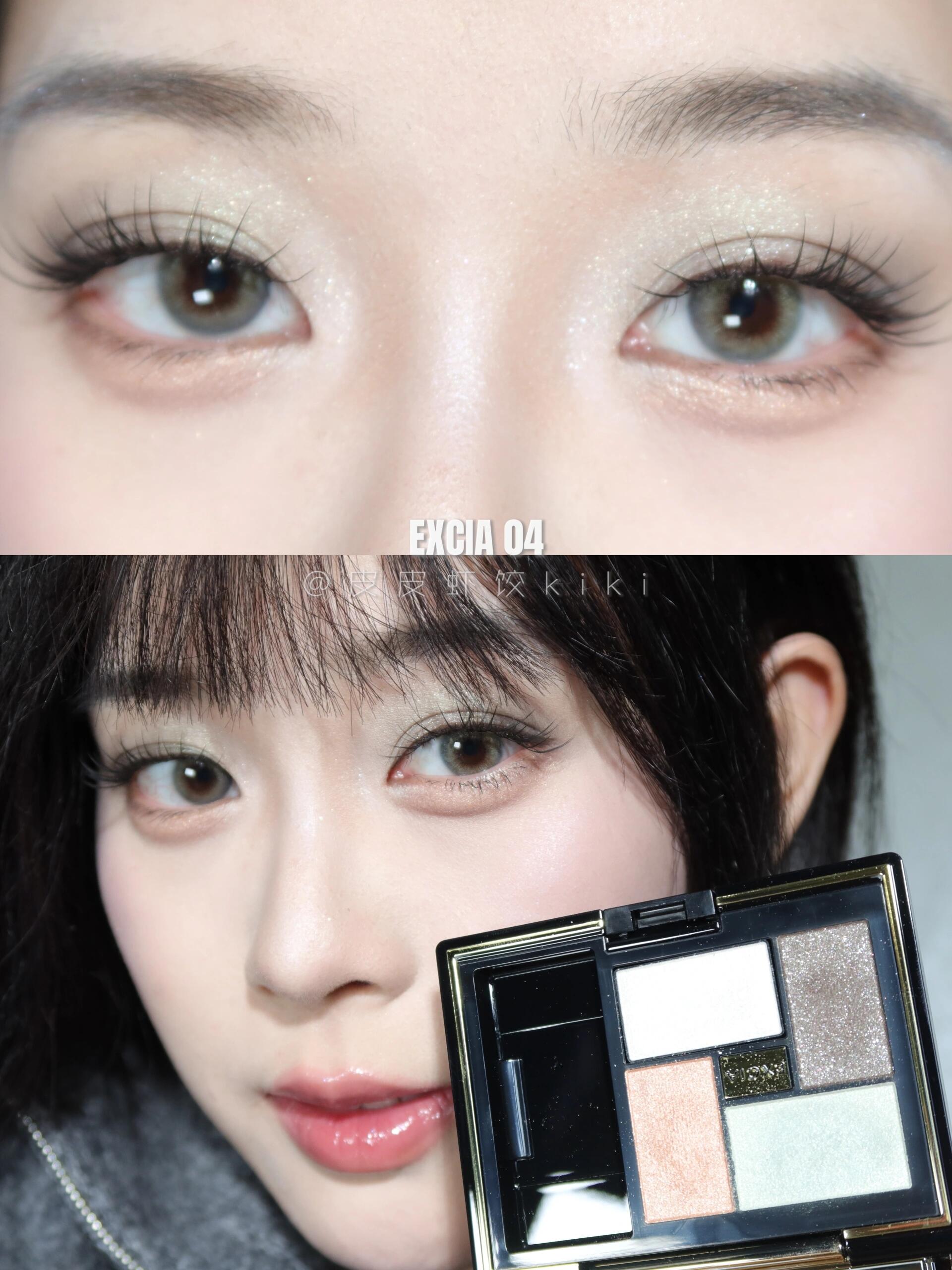 绿意朦胧的纱感|淡人小烟熏|excia 04 ◽excia新版眼影04 配色有点像elegance 32的低饱和冷调版本 ele32更活泼,excia04更清冷 腮红搭配的three多用膏06和addiction 015m,06大面积涂在颧骨外侧和颊侧,过渡到面中转折线,在转折处靠面中的位置叠加015m添加红润感。这组搭配起来就是淡淡的、冷冷的,不是很抢戏的腮红组合,这种思路可以再延伸到其他妆面和产品里 唇部产品搭配了相对没那么冷的颜色去呼应奶橘色,看起来更和谐 持久度不详,因为就是简单试试眼影效果,画完就卸了去玩游戏了 #一周眼妆不重样 #眼影试色 #日系眼影 #橄榄皮眼影 #掌管微微熏的神 #清冷低饱和氛围感 #无滤镜试色 #绿色眼影 #秋日到站计划 #秋日清冷妆 |
