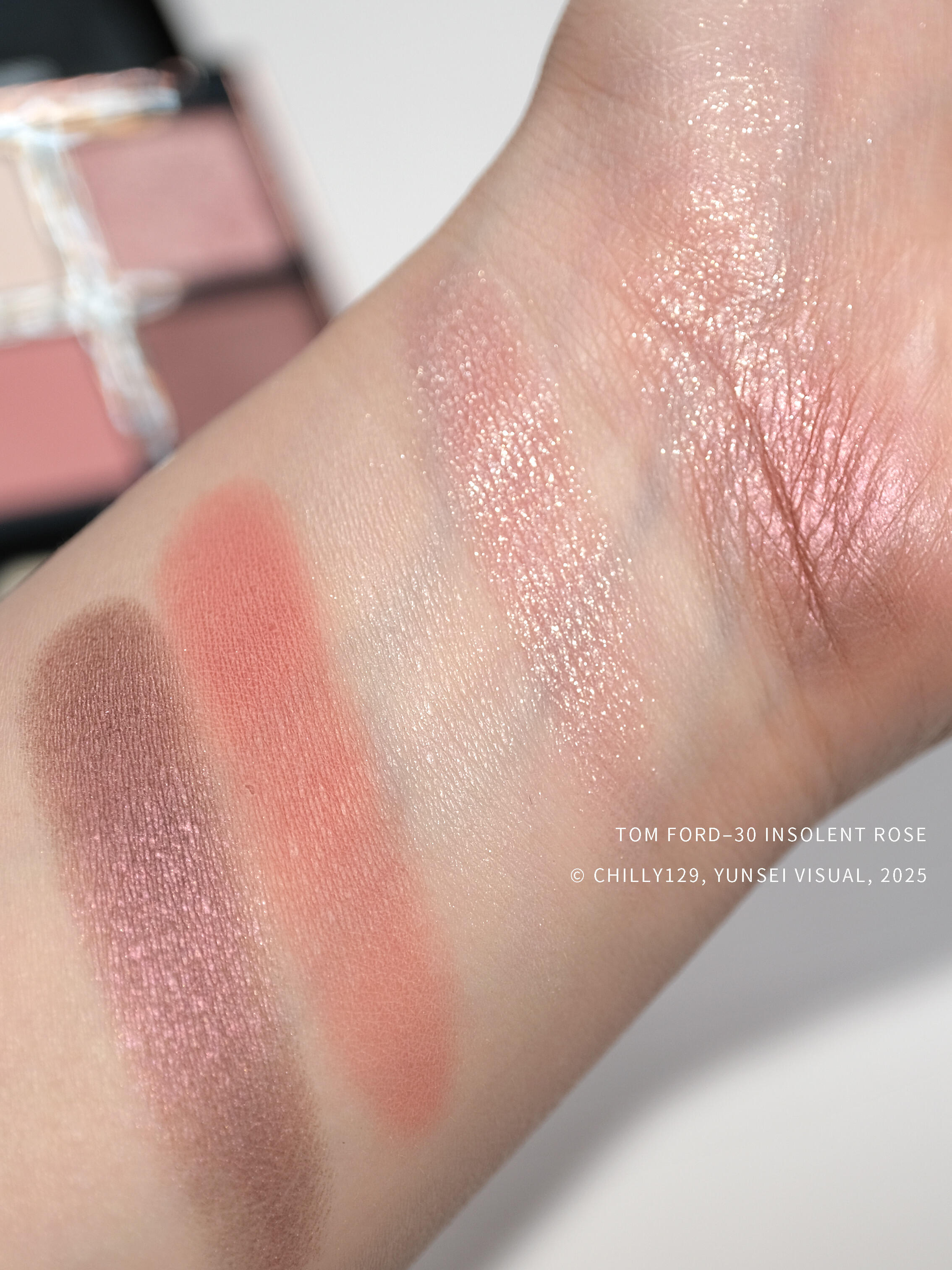 30岁 正是重新爱上粉色的年纪|TF30+圣诞01 ◾️TF30 Insolent Rose 孤傲玫瑰 赶在明年即将版本更新前入手,对我来说集邮>实用。这盘推出至今我在专柜摸过许多次。每次刷美女repo种草,试色后又冷静拔草。真正入手磨合后,依然保留意见。 它看起来比01冷,但由于↙️粉色品控不稳,上眼粉嫩感完全看运气。而我这盘是新批号,上眼过于燥热臃肿。本人中性长相+肿眼皮+让粉色眼影红上加红的偏粉肤色,各种debuff叠在一起,整个“粉娇你几”,只有“玫瑰”,毫无“孤傲”。 原本寄希望↘️粉紫能挽回眼妆,但它显色偏弱,紫调底色被珠光压得干干净净,上眼就是一片粉光。于是莫名其妙地,它在我脸上的效果反而不如看似偏暖的圣诞01。 理解它受众广泛、画好了嫩十岁,但不是我的风格。 ◾️TF01 Chalet Mink 霜降盘 和TF30完全相反。抱着集邮心态挖到宝。核心原因还是老生常谈的:深色够深而且不红。当我看到眼线色能慢慢叠出浓郁醇厚紫色调,就知道这波稳了。再搭配眼线加深大法,整盘上眼像一锅在雪地里咕噜冒泡、并且折射出冬日刚升起太阳的热红酒。 ◾️TF01 Chalet Mink 霜降盘 和TF30完全相反。抱着集邮心态挖到宝。核心原因还是老生常谈的:深色够深而且不红。当我看到眼线色能慢慢叠出浓郁醇厚紫色调,就知道这波稳了。再搭配眼线加深大法,整盘上眼像一锅在雪地里咕噜冒泡、并且折射出冬日刚升起太阳的热红酒。 ↖️略深的橡皮粉,无面粉感,完全融肤贴肤。粉质感觉比秀场系列又进步了一些。重申一下,去掉滑石粉辅助,依旧做得比老版哑光显色贴皮,不管怎么说都是值得称道的。大品牌的研发力在这一刻得以具象化。 ↗️闪片,粉香槟底搭配银粉细闪,层次感优秀,一个单色能画出底色+前前后后细密小闪的效果,跟随角度水波流转。许愿下版本亮片就在它基础上增加一些大闪层次。 ↙️对冷皮来说还是暖,建议不要和其他3色混用。不过它是带点收敛感的粉,反而比30的粉要百搭。只要不是太冷粉、太冷绿的皮,依旧可正常使用。 配色貌似保守,实则改掉了以往TF粉色系盘子的不少缺点。没买过TF粉盘的建议搞;TF暖色连号选手建议观望;收藏党请买,目测改版前白盘收官之作,这也是我想集邮它的最大原因。 说到底,我其实没有真正爱上粉色。觉得01好画,是因为它既有足够深的深色,又配了个偏冷耐看的细珠光。整体看来,TF在23-24年因改配方、换老板而迷茫了一阵,现在能感到它逐渐找回审美与质感。期待明年的新系列。 |