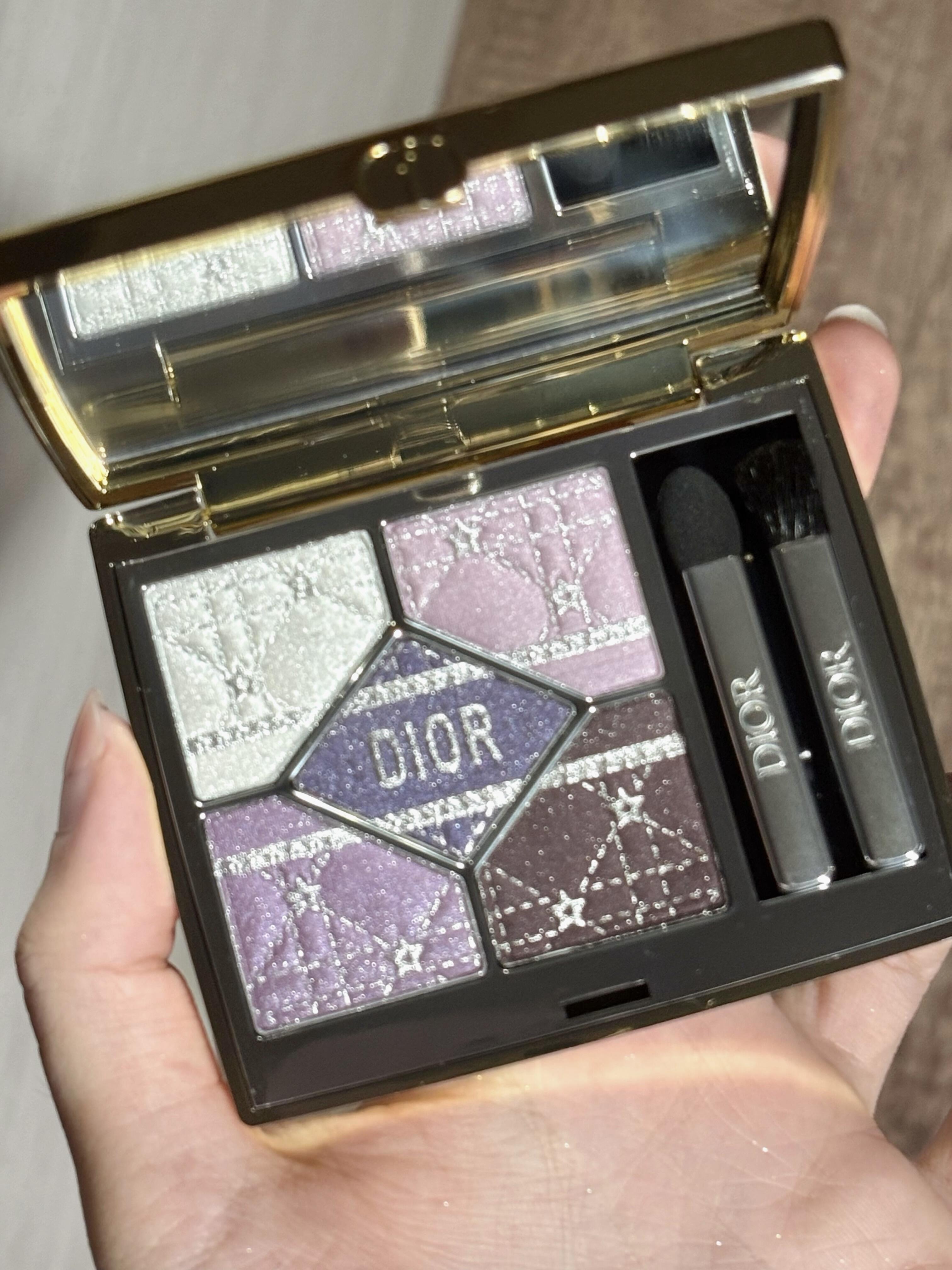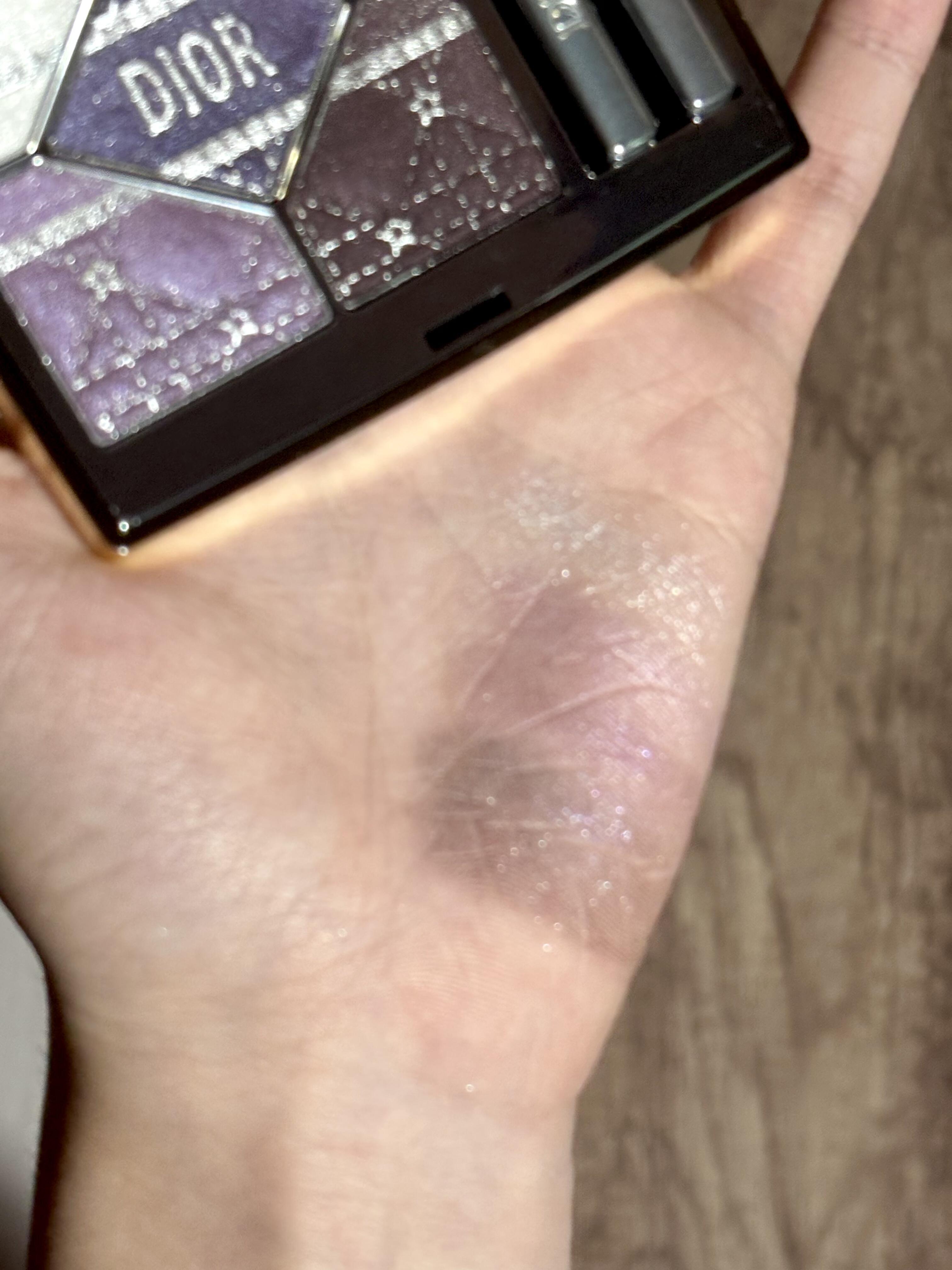 dior912|可以,但没必要(写在前面:自费,本人冷夏混浅夏低饱和橄榄,仅代表个人感受) 这盘是买得一波三折,一开始看是圣诞限定,想着应该没伊势丹那么难买,只定了一盘。然后卖家跟我说没买着…想叠券买旗舰店的,抢到券就断货,最后紧急吃了个高价现货。 粉质真的不怎么样,几个浅色还好,中间的蓝紫色掉渣,摸不匀,手上试色是我努力不碰坏银色压花的情况下叠加三次的表现。 再说颜色,这盘作为主色调的两个紫色在我这都泛红(仅代表我自己!!)我个人是非常不喜欢紫红色的,不衬肤色而且过于成熟,上眼的气质妩媚,跟我本身比较割裂,眼是眼,脸是脸的。(上眼在p4,是努力叠加中间蓝紫色的效果,出来的妆效类似于花缠吧,这俩我都非常一般般) |