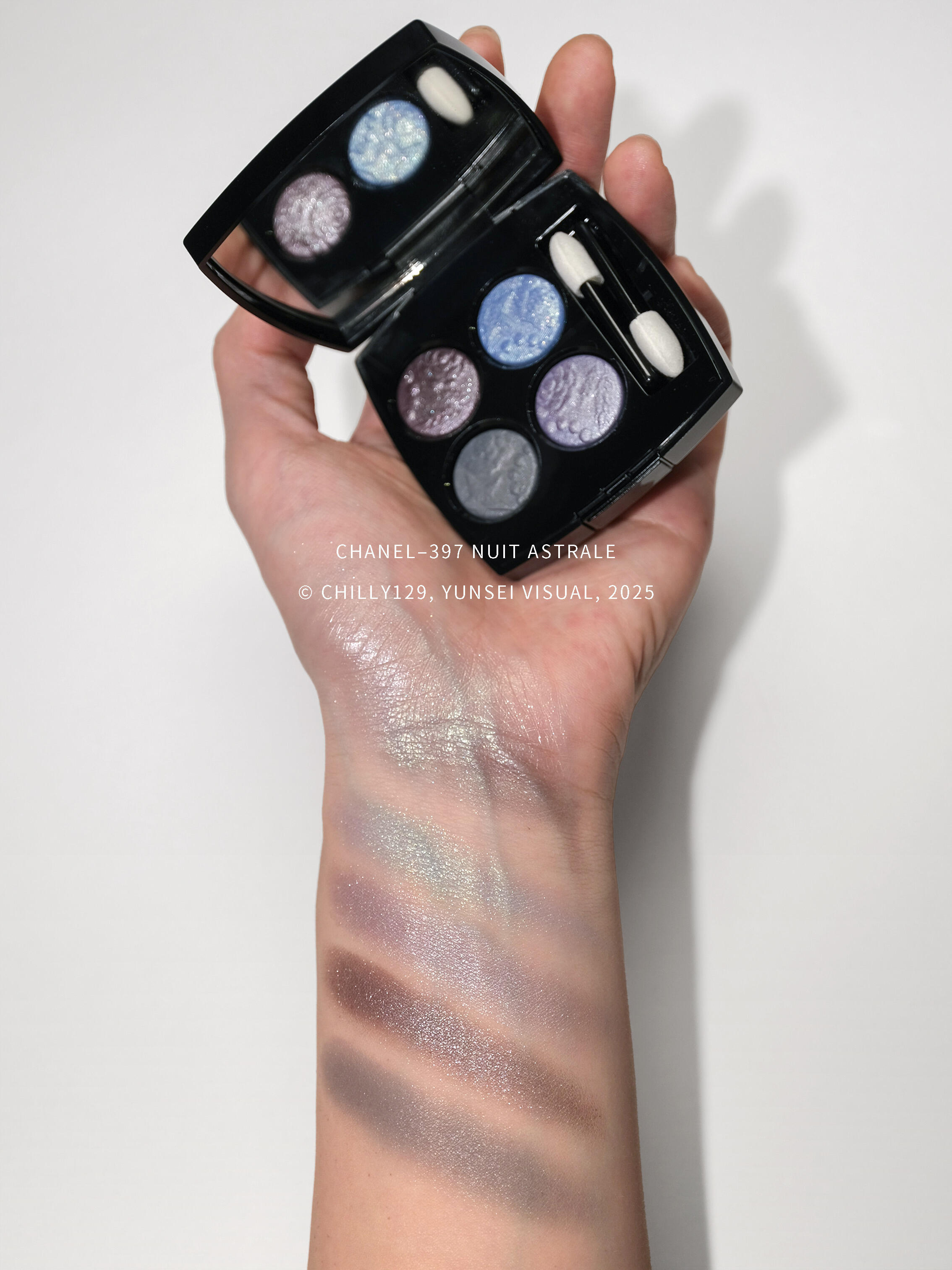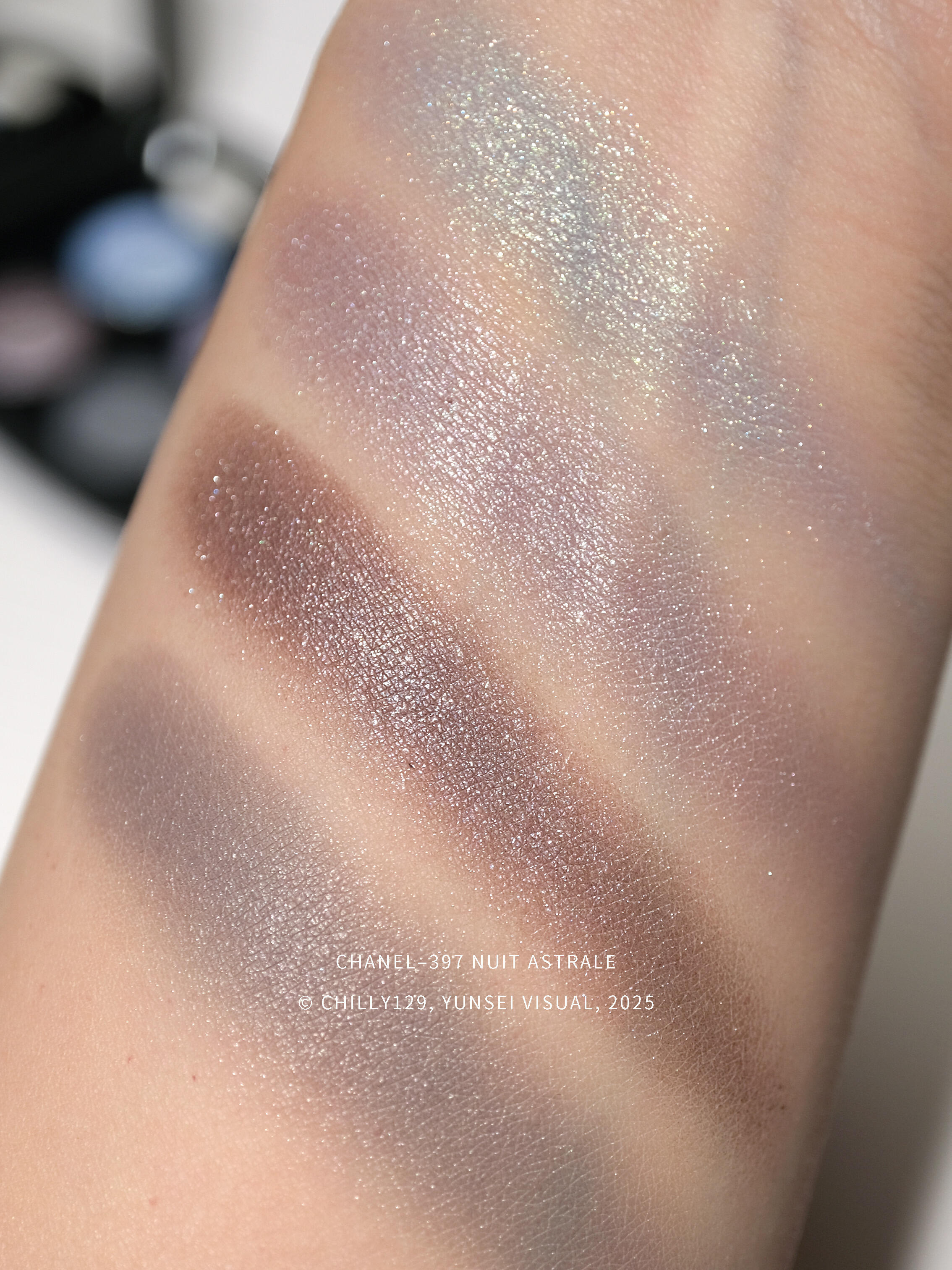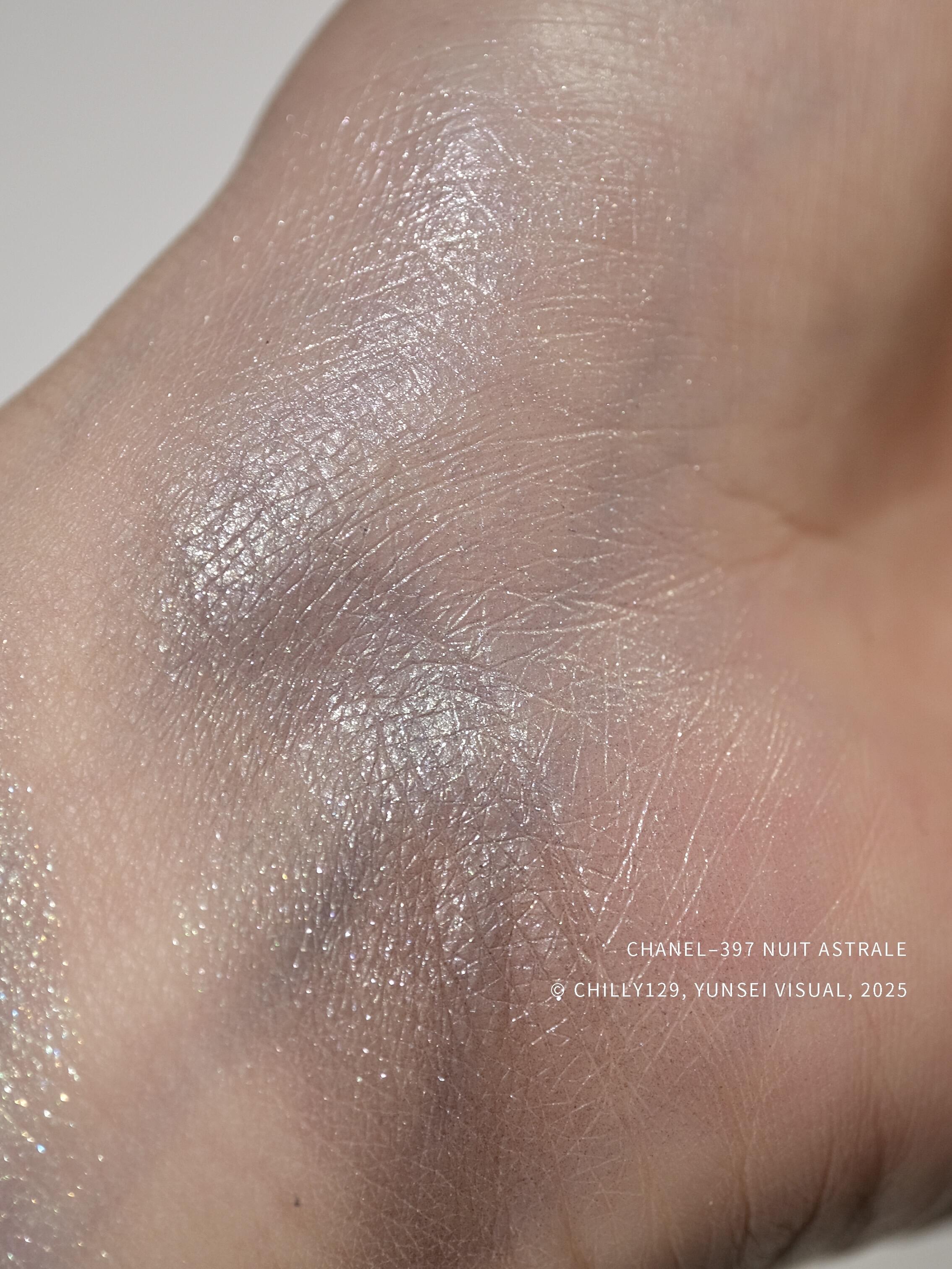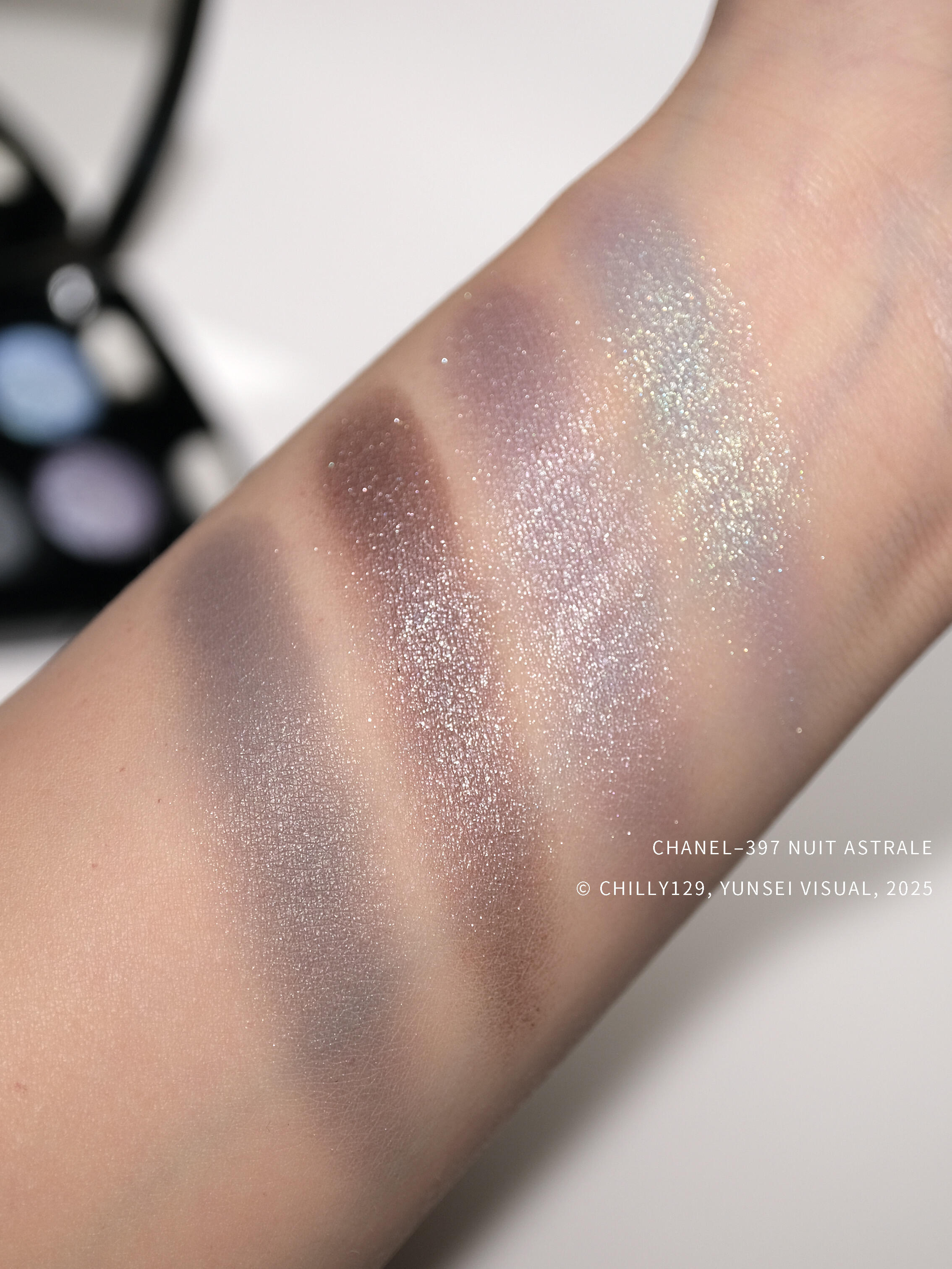五彩斑斓的…灰?|Chanel圣诞限定眼影397 话题度很高的圣诞限定之二。这位更是重量级,早在年初就被曝出了色卡,一石激起千层浪,冰雪般的配色与节庆感十足的压花,早已暗示了它属于圣诞,大家就这样带着对蓝紫色chanel限定的期待,从年初盼到了年尾。 ◾️质地 经典小香烤粉,叠加多次依旧轻透微闪。上排2色相对更闪,左下最接近缎光,右下常规细闪。整体妆效的闪片含量高于常态盘子不少,但依旧是祖传的低调路线,不是华丽璀璨的大颗闪。 ◾️颜色 首先,是灰的。不算蓝,也不紫。如果想画成官图效果,要么用调和液要么用别的产品打底,只用一盘4色+海绵棒绝无可能。但整套圣诞系列中又没出现其他的蓝色产品,即使用了其他c家单品来辅助呈现,那理论上也和圣诞系列没有关系。所以个人对目前的宣传图真想打个大大❓。整体来说,应该将它看作一盘轻微泛蓝的灰色眼影。 ↖️灰紫稍微带一丢丢紫红,搭配银色闪片。上眼后是微紫的带闪深灰。 ↙️发蓝的灰色,好看。以往的中灰色不太适合我,这次还好是烤粉质地自带细闪,上眼依旧保持透明感。很适合给盘里其他颜色打底,增加眼妆的冷感。 ↗️带金闪的蓝,且金闪会盖住本就不强的蓝。个人不太喜欢,尤其上眼后金光让本就拉不开对比的配色更糊了,私心更希望这格是春季78那样纯粹的冷调浅蓝色。但也有不少姐妹repo说正因为金闪,让原本很不适合灰色系的人也能画它。总之完全看喜好。 ↘️浅紫细珠光,超美,个人感觉是全盘顶梁柱。上眼表现出的淡紫感恰到好处,一点都不闷。光泽度也呈现得很克制,不会让紫灰色因为金属感太强而显老。缺点是非常挑肤色,需要肤色带比较明显的冷调,才能衬托出它的美丽。 整体妆效能呈现一种细腻而微妙的虹光渐变,仿佛彩妆界终于迎来了五彩斑斓的灰。除了四色使用,两两组合也意外和谐。总之,是一盘大胆试探、有意思的限定。完全看肤色,有缘可入;不合适不用印撑,会很难顶。 除了肤色,也比较考验光线和观看角度。光线角度好是波光粼粼、色彩丰富的图7,环境一差闪片的微妙变化直接消失,只剩灰灰的底色+寡淡的闪片(图8)。 对浓人来说,整盘唯一的问题是没有深到能镇住整个妆容的深色。左边两格相对深,但顶多算中等。有点全靠chanel烤粉质感硬撑的意思,可以想象即使将来出现外表看着一样的常规质地眼影,或可能出现的种种平替,估计都不会比现在的版本更合理了。 |