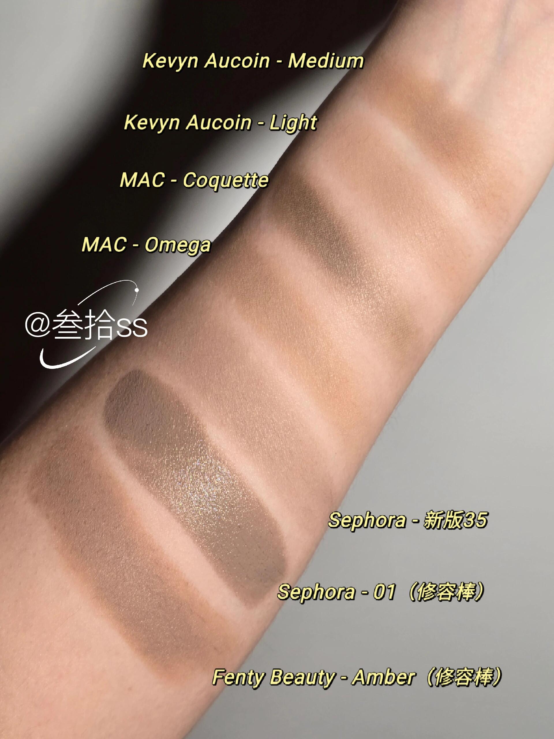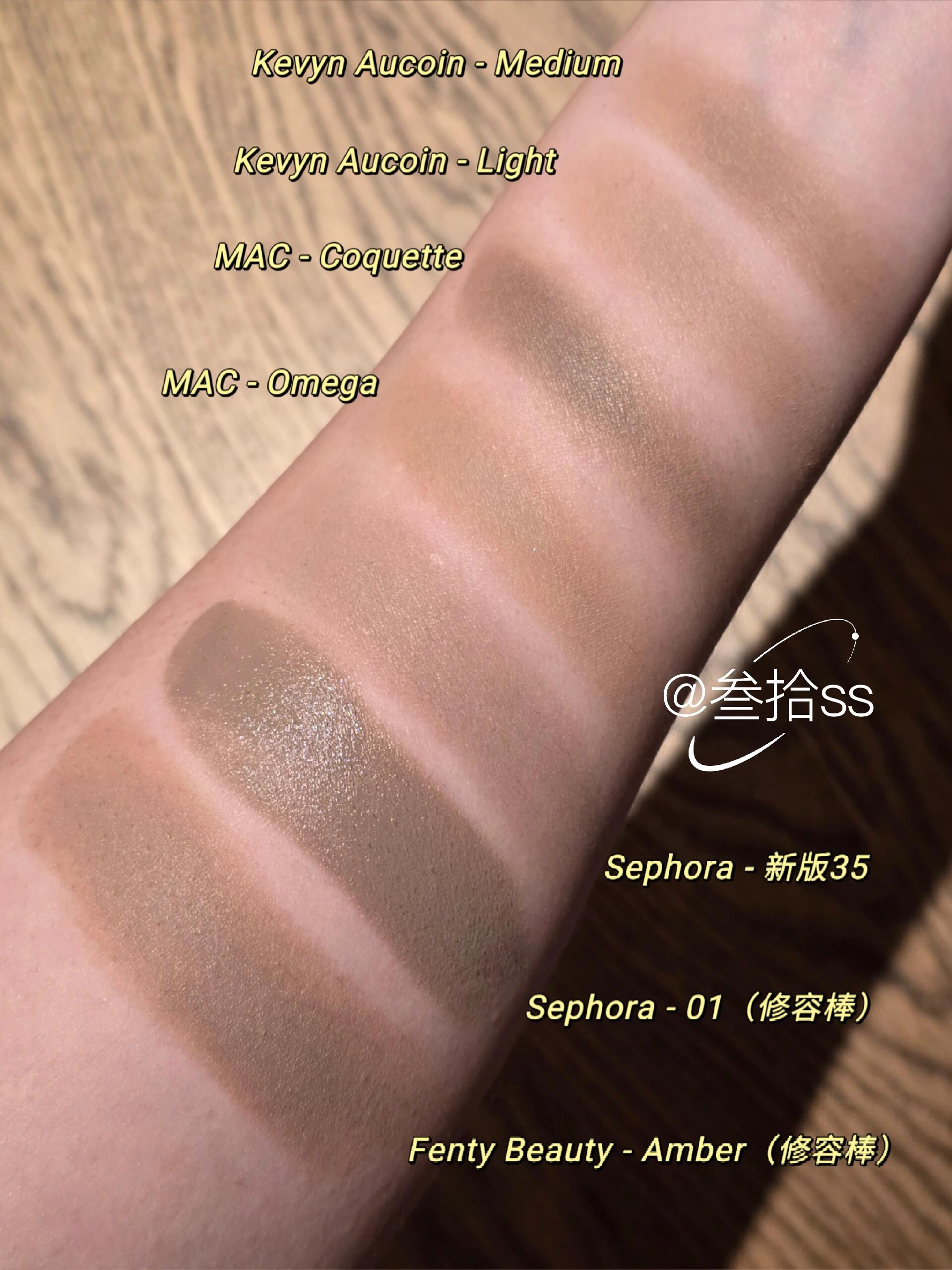 彩妆试色|橄榄皮修容测评 修容是少数用惯了就不想尝试新品的彩妆 我曾经一度认为如果出门化妆只能选一样东西 我一定会选眼影,但现实告诉我是修容 一块修容除了可以打鼻影、侧影 还可以拿来画眼影、眉毛 虽然脸上没有很多颜色 但是立体度有了,人看着就很精神 图上这几款算是我这么多年用下来的真爱 背景:橄榄皮 1.5白 偏好上脸立竿见影/比较重的修容 追求帮我拔地起高楼的鼻影产品 1️⃣Kevyn Aucoin - Light & Medium:早年的ka在修容届可以说是无敌手,可惜品类做的太专,这几年明显感觉撑不住了。Light和Medium都是褐色,有种修容和古铜结合的感觉。Light浅一点、灰一点,打鼻影刚刚好;Medium暖一点,适合打侧影,一上脸瞬间瘦掉一块,很适合上镜。Medium以前还出过一个旅行盘,我用到了空盘。旅行盘里另一块是高光,不亮,但是打在鼻梁上,鼻子瞬间高起来,可惜没有单卖,后来旅行装还停产了。 2️⃣MAC - Omega & Coquette:大名鼎鼎的Omega应该没有人不知道,这块在我脸上就是淡淡的,没有那种拔地起高楼的效果,所以我之前一直对它一般般,直到我发现了Coquette。先用Omega打鼻影,再用Coquette在山根两侧加重鼻影,立体度瞬间就上来了,但是因为这个颜色挺灰的,只适合用在鼻子上,不适合用在脸颊两侧,不好衔接。 3️⃣Sephora - 新版35:这块一度是我的人生挚爱,从换色号用到换包装,这块是我的第三还是第四块了。灰的刚刚好,鼻影、脸颊都能修,立体度也够,而且修完很干净,不会显得脸脏脏的,属于综合评分极高的糟糠妻选手。 4️⃣Sephora修容棒 - 01:其实我不太喜欢修容棒这种质地,纯粹是爱屋及乌收的,但是效果意外的好。这一块是很油润的质地,所以上脸不会拖拽你的底妆,而且很好推开,如果想要找灰调修容棒的一定要试试这个。唯一的缺点是,头太大了不好直接修鼻影,需要工具。而且用惯了粉状修容,我总是忘记在上定妆粉之前用它。 5️⃣Fenty Beauty修容棒 - Amber:这是全篇唯一一个不推荐的,放上来纯粹是因为它火,想要给大家对比避个雷。从试色可以看出Amber颜色不仅暖,而且底色有点泛红,所以如果你是橄榄皮或脸颊泛红的都请远离这一款,不仅不提高你的面部折叠度,还会显得你脸颊很脏。而且这一款质地真的很硬,很不好推开。 |