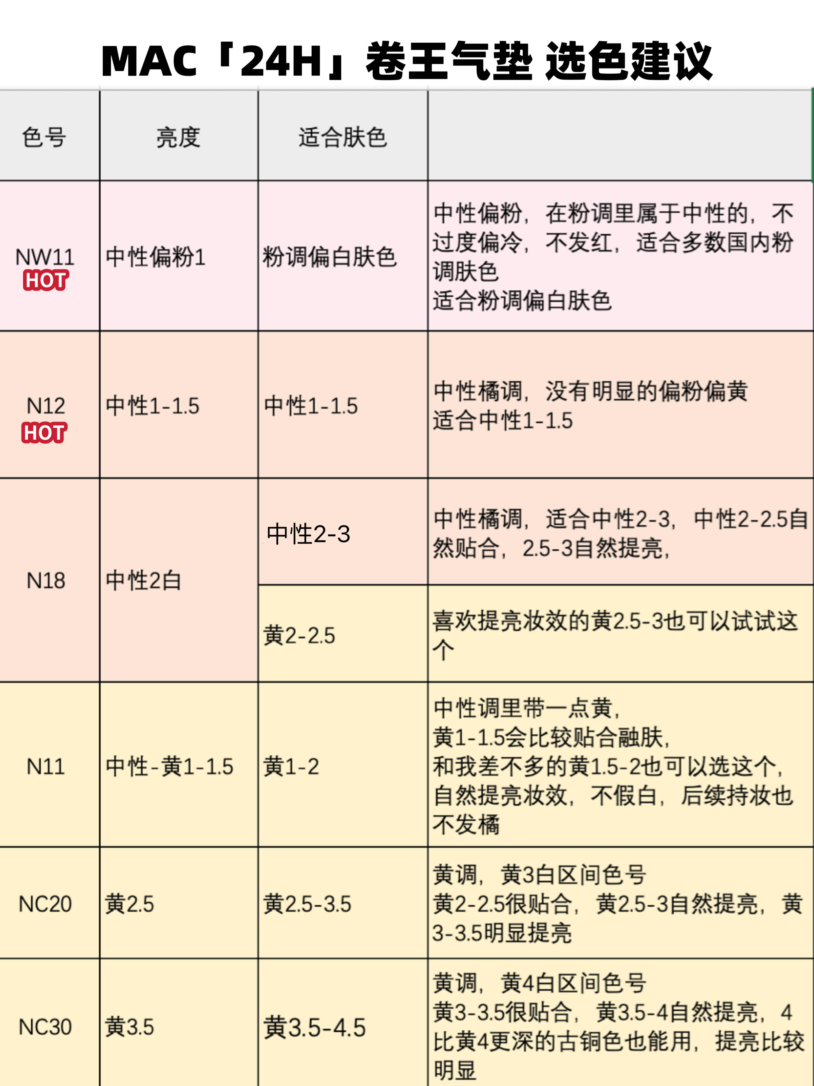 我×粉底用x色,MAC24H卷王气垫选什么色? 今年夏天我已经做过一次MAC「24H」卷王气垫的测评了,这次分享一下换季,初冬的使用感受 对于冬混干夏混油肤质来说,产品确实不仅夏天能用,换季初冬也都能用,真的是很六边形战士了! 我夏天用时,后续出油量会多一些,但是到了换季,脸稍微干了一点后,使用起来更合适了,干润度正好,不需要额外注重秋冬的那种补油保湿,用法很省事,直接气垫上妆,常规妆前定妆就可以,早八新手友好 另外,刚上脸时惊艳的妆感,真的非常打动我, 每次用它上妆后,都能让我心情愉悦~ 遮瑕力真的很高!我鼻梁旁边长了一个巨红的大痘,气垫也能遮住,震惊… 粉质足够细腻,叠加也不用担心厚重卡粉 整体妆效是很美的雾光肌,又贴合又轻薄又细腻,散发着皮肤的自然光泽感 🤍调色审美 调色审美是自然融肤,上脸很自然,一点都不假白,包容度比较强,大多数人都能选到合适的 粉调:NW11 中性调:N12,N18 黄调:N11,NC20,NC30 #气垫#MAC24H卷王气垫 #MAC气垫 #油皮气垫 #秋冬气垫 #持妆不暗沉 |
