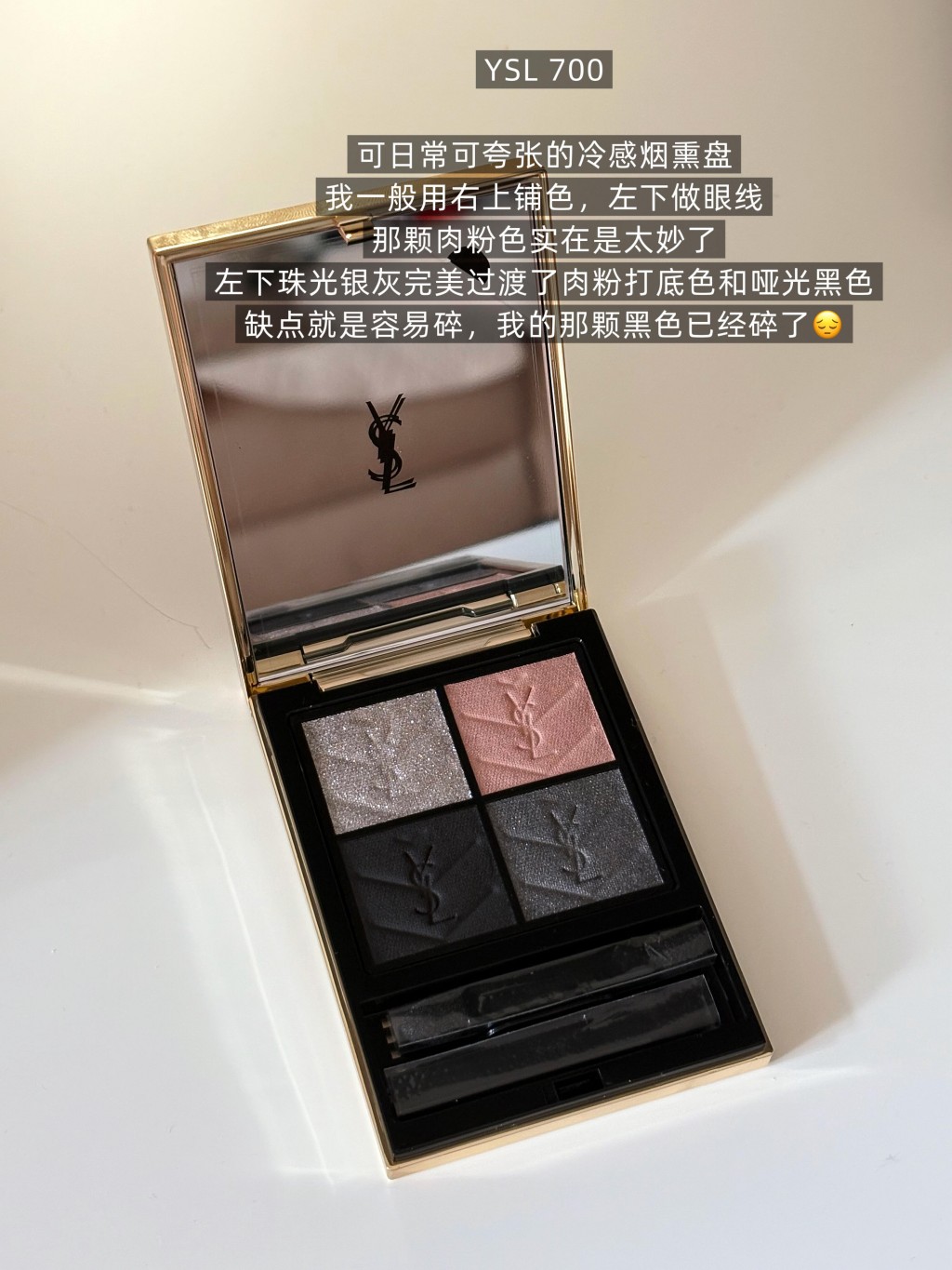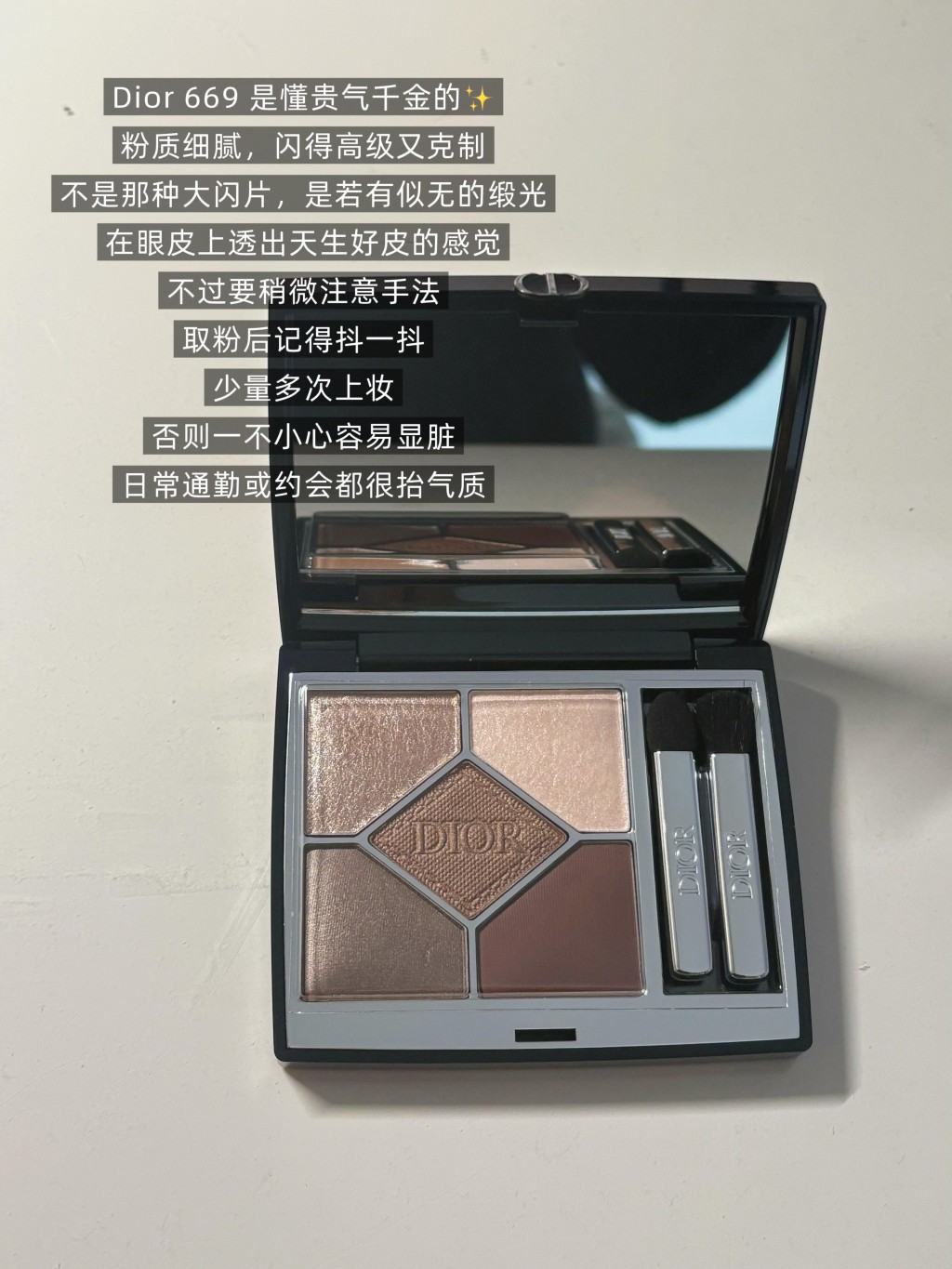 降温了,又轮到这几盘眼影出场 Dior 669 & YSL 700 两盘都是可浓可淡的类型 淡妆日常清冷,浓一点就是贵气小烟熏 附上两张朴实无华的试色 YSL 700:可日常可夸张的冷感烟熏盘我一般用右上铺色,左下做眼线,那颗肉粉色实在是太妙了左下珠光银灰完美过渡了肉粉打底色和哑光黑色缺点就是容易碎,我的那颗黑色已经碎了 Dior 669 是懂贵气千金的+粉质细腻,闪得高级又克制不是那种大闪片,是若有似无的缎光在眼皮上透出天生好皮的感觉 不过要稍微注意手法取粉后记得抖一抖 少量多次上妆 否则一不小心容易显脏 日常通勤或约会都很抬气质 |