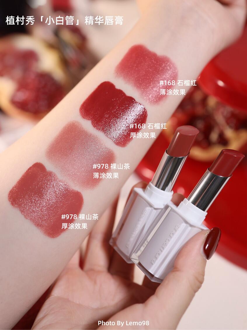 🌸灵动自然的裸山茶|植村秀又出仙品新色! 植村秀太懂中国年了!新年限定两支新色直接长在审美靶心!一支百搭温柔的山茶裸,另一支浓郁显白的开运石榴红,这两支直接贯穿整个新年周期的美貌!从过年聚会到日常通勤,所有妆容需求全拿捏~ 精华唇膏里真的的添加了多种精华,上唇丝滑无负担,干唇星人狂喜!冬天涂润到飞起~ #978 裸山茶 薄涂是灵动又自然的蜜桃裸粉色,伪素颜感&裸妆天菜!完全不挑皮不挑妆! 厚涂是带呼吸感的玫瑰奶茶色,温柔又大气,浓郁显色覆盖力在线 是深唇姐妹也可以放心涂的温柔裸色~ 新年走亲访友、约会出街涂它,超级显贵有气质! #168 石榴红 薄涂是冷调元气红,就像天生的好血色,日常通勤&素颜涂都很可 厚涂是饱满冰糖石榴红,不像传统的正红,这支带有一点儿冷调,明艳气血感拉满,真的超级显白!很适合大场合的一支,过年聚会涂它,轻松拿捏合照C位~ #植村秀口红 #植村秀小白管精华唇膏#新年妆容 #口红试色#植村秀绢感润护裸感唇膏 |