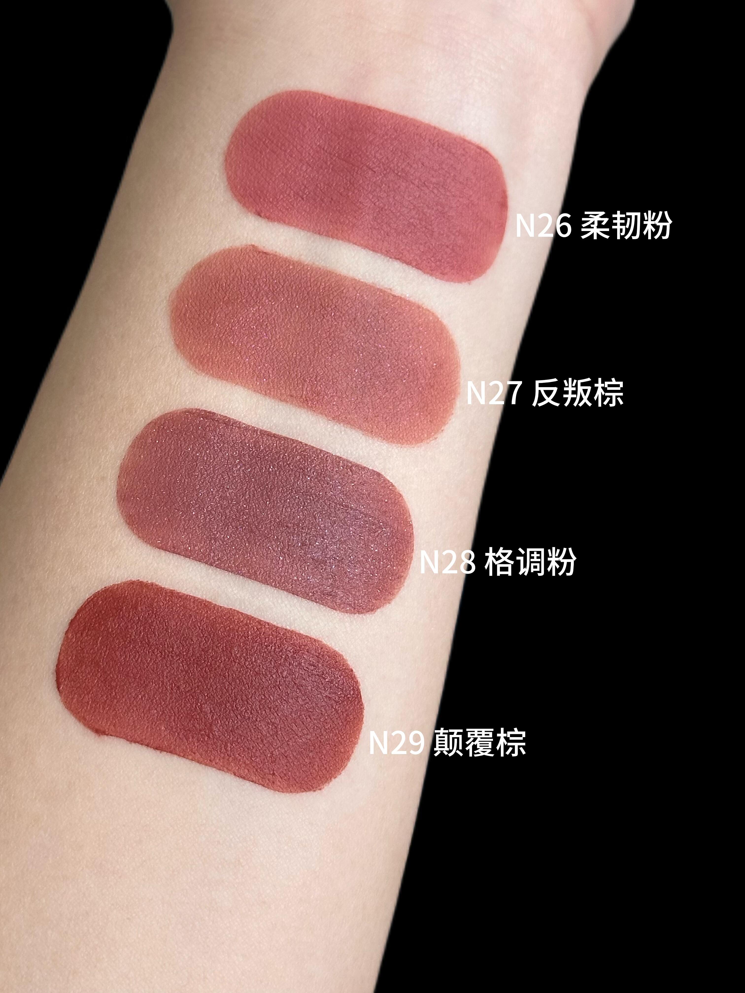 粉棕之间」秋冬王炸色! 🟠颜色 ◽️N26 柔韧粉:低饱和灰粉色,清冷感十足 ◽️N27 反叛棕:粉棕调融合的恰到好处,紫色细闪自然光下也不突兀,灯光下又若隐若现,氛围感满满 ◽️N28 格调粉:银闪➕烟熏感粉棕调,清冷又时髦 ◽️N29 颠覆棕:浓郁复古红棕色,超显白,秋冬适配度💯 这次的朵子真的是黑马,颜色都很好看,而且都适合黄皮,深唇怕有紫调,可以入27和29! 🟠质地 唇霜质地,会成膜,成膜后基本不沾杯不掉色,薄涂质地轻薄,厚涂隐匿唇纹不拔干! #橘朵唇粉霜 #秋冬口红 #新品抢先看 #橄榄皮 #黄皮口红 #口棕 #深唇 #无滤镜口红试色 #原相机口红试色 #口红测评 |