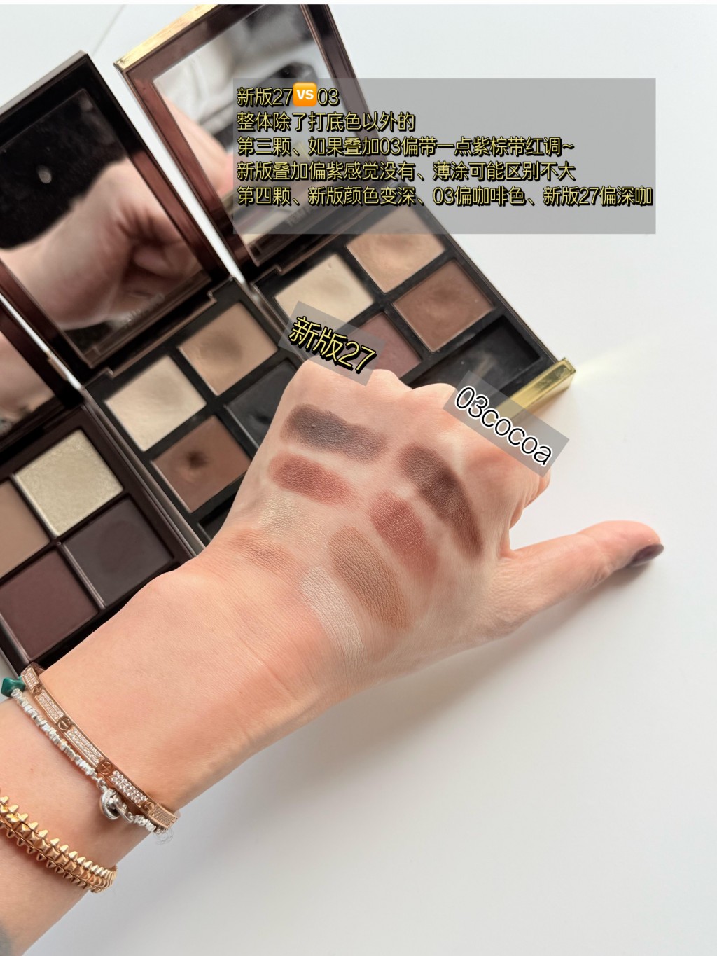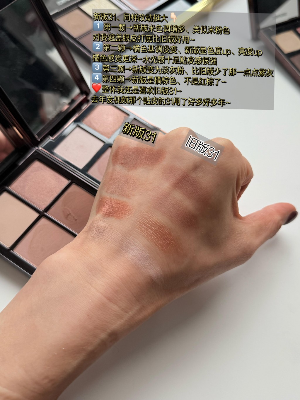 新品试色 | 只到了6盘~先发个图文🤫 差35.38、快了快了~ 我画20太顺手了🤣30我也喜欢因为最后那个紫色、我能用~今年我把所有以前紫色都翻出来了~ 对于27我可能更喜欢03、但我图片里03是近几年的、古早的03太旧了我好像送人了、找不到了~ 具体还要看上眼效果、眼影每个人眼睛肤色发色穿搭不一样、画出来感觉不一样 但是自己能用什么色调看试色基本就知道了~ 再不确定就柜上试一下比较保险~#美妆大侦探 #没事儿也化妆 #新品抢先发 #眼影试色 #新品速递 #新手最容易上手的眼影盘 #新品眼影 #春季新品 #彩妆新品 #手臂试色 |