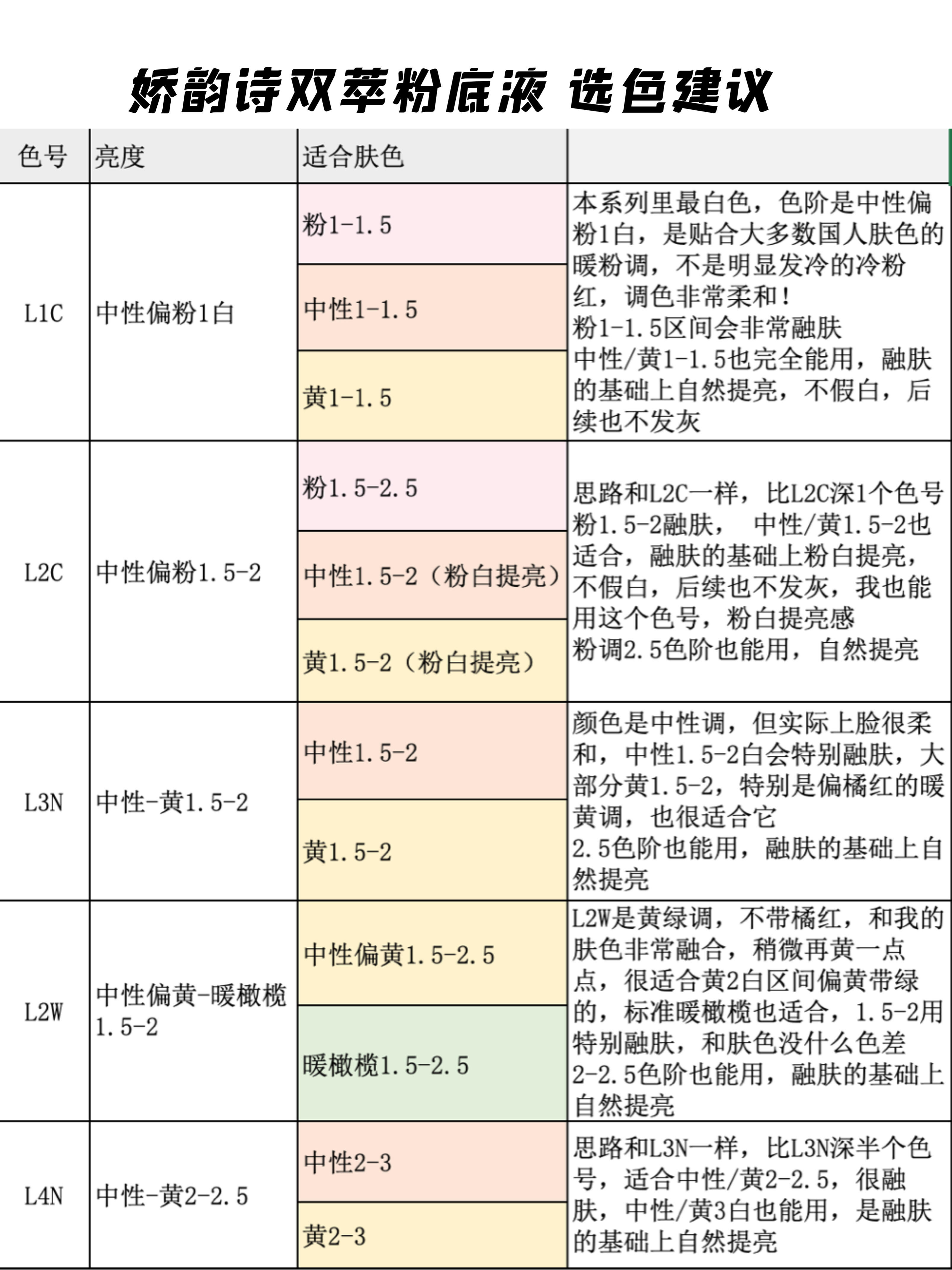 实测|千呼万唤的娇韵诗双萃粉底液试色来了! 肤质:冬混干夏混油 肤色:中性偏黄1.5-2(黄里带点绿,黄二白区间) 作为一个多年底妆试色博主,基本一眼就能看出来哪个粉底色号更适合大多数人,国人选粉底液的审美我也很清楚,娇韵诗粉底调色一直都很深得我心,这次上新我也是很快入手做全色号试色测评了 这次新出的娇韵诗双萃粉底液,我觉得很惊艳!以前,往粉底里加入多少精华全靠品牌宣传,消费者没有实际感知。双萃粉底液直接双管设计, 1/3一管精华,2/3一管粉底液,让人一目了然。 刚上脸是很美的光泽感,贴润奶油肌妆效,混合皮当你秋冬觉得脸变干,需要一些油分去滋养皮肤,同时又不能油润到打滑的时候,这个就很合适。 肉眼可见的加入了双萃精华同源的多种植萃成分,87%精华入妆,有明显的"滋养感",很贴肤,不会油润到贴不住脸,在脸上打滑的问题!不假润,持妆8小时也不倒拔干,也不怎么暗沉氧化,带妆后奶润感会更越来越明显,混合皮秋冬用真的很舒服~ 🤎试色选色: 调色审美是娇韵诗底妆一贯风格,融肤级贴合,色调色阶做的非常准确。 调色特别柔和,能贴合绝大多数国人肤色,色号和色号之间没有特别强的选色限制,即使选的没那么准,上脸也都是融合不突兀的。 我就是L2W,L3N,L2C都能用,满足我不同审美需求 因为不氧化暗沉,所以选色不需要因为担心过度暗沉问题,特意选白一个色号 粉调:L1C,L2C (如果分不清楚自己具体是哪种肤色,可以盲选这两个,1白选L1C,2白选L2C) 中性调:L3N,L4N 黄调/橄榄调:L2W #娇韵诗双萃粉底液 #粉底液推荐 #底妆分享 #粉底液 #养肤粉底液 #水润粉底液 #干皮粉底液推荐#娇韵诗双萃精华 #粉底液测评#粉底液色号 |