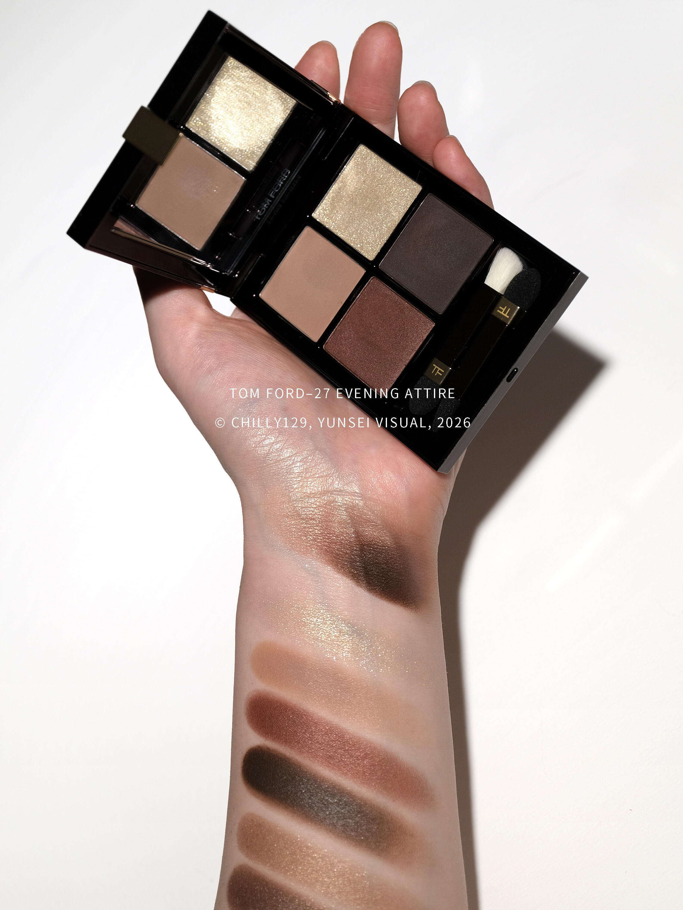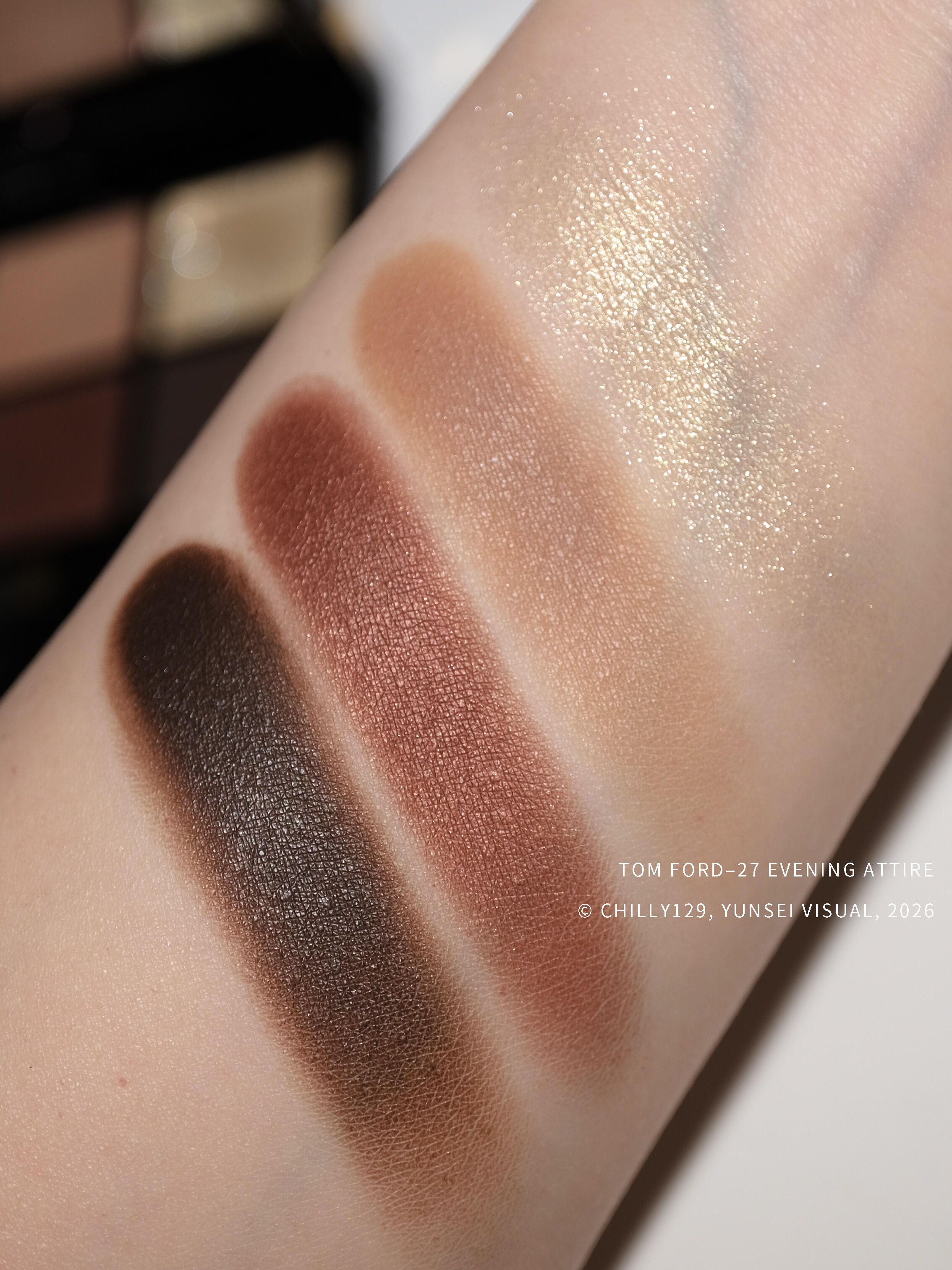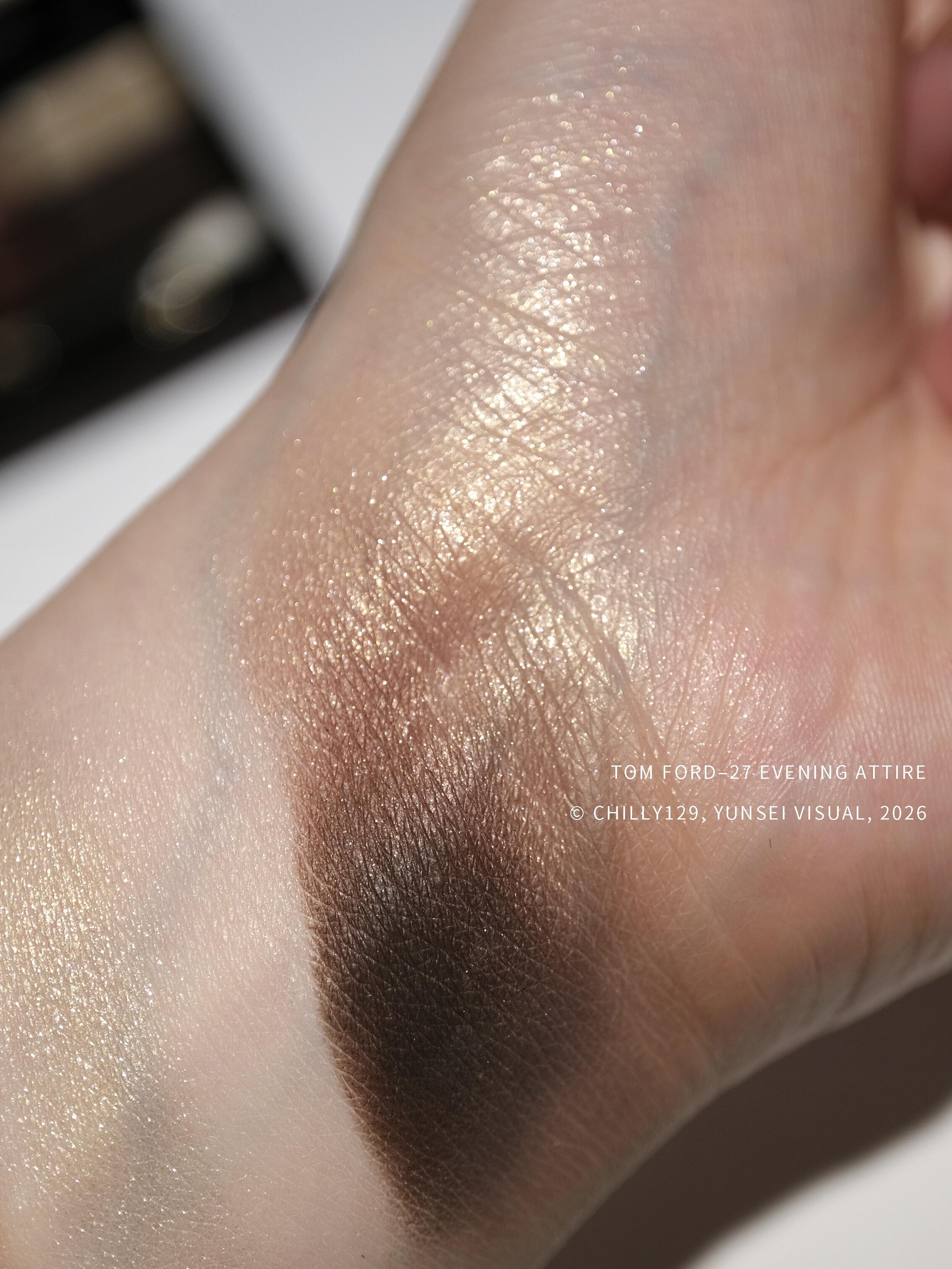 意外的故人之姿|TF新版27 你的T来了!很意外,见到新27 Evening Attire实物,立刻让我想起烟熏神盘29 noir fumé。巧的是29那期新品也诞生于巨大争议中。当时看到亮片集体离家出走,大家的震惊程度完全不亚于去年看到大T裤衩。 上眼后既视感依旧很强,仿佛热可可版29携细闪转生。极其浓郁的中性棕色调,搭配略带灰底的低饱和米金闪片。 关于质地调整, ◾️浅色哑光:无明显变化。掺了细微到几乎不可见的珠光,上眼很贴皮肤。 ◾️深色哑光:本次改版最不满的细节。上色力度无法一笔到位(即使能叠加。在秀场系列就初见端倪,能理解品牌的妥协,但作为多年浓妆党,每次反复叠加才能达到理想显色度总有些麻烦。 ◾️亮片Sparkle:几乎沿用上版本最终完全体,参考25圣诞右上质感。丰俭由人,薄涂清透,越叠加越密集。闪粉颗粒虽小,但层次感不差。 提到亮片,绕不开的问题是“大亮片在哪儿”。但讲道理,在连续两盘古早TF闪片变砂纸后,我就不再纠结这点了。很显然,TF也不想被困在因为原料注定无法复刻的“大亮片”里,选择主动进入下个阶段。 ◾️细珠光Demi matte:除了nior fume,TF并没有哪个常规质地细珠光给我留下深刻印象。论印象深刻,反而远古TF那些煤渣一样的紫色珠光…所以光看新27,珠光至少稳定很多。 甚至对于浓妆爱好者,它比深色哑光更重要。下排深色组合上眼,能将眼部轮廓刻画得十分深邃,同时晕染不泛红。 关于老03,以及其他在售热门哑光大地4色,个人觉得没啥必要对比。TF能叠到非常厚实,越浓越好看,与大部分品牌把哑光四宫格做成清汤寡水+上手友好的路线彻底相反。 而它的祖宗27 mink mirage,确实带动了全哑大地盘的流行,27之后仿佛所有牌子都要出个色阶排排站的四色哑光才算完成任务。但我一直强调老TF的实力在于质地和颜色搭配、4色互补。这也是为什么我始终期待4色眼影能拥有多元化质地,而不是重复1–2种。 关于外观争议,除了大T,也有大家对旧版的惯性,无法想象TF眼影盘这套教科书级别深入人心的设计要怎么更新。实际上,无论怎么改,一个全新面貌的入世必定伴随争议。因此我只能客观肯定TF“敢于打破既定存在”的勇气,哪怕那个“存在”看似最优解。至于好坏,只能交给时间。 但话说回来,失去大金条的新版盖子挺容易歪的,真替TF的祖传品控捏把汗 #大地色眼影 #彩妆新品 |