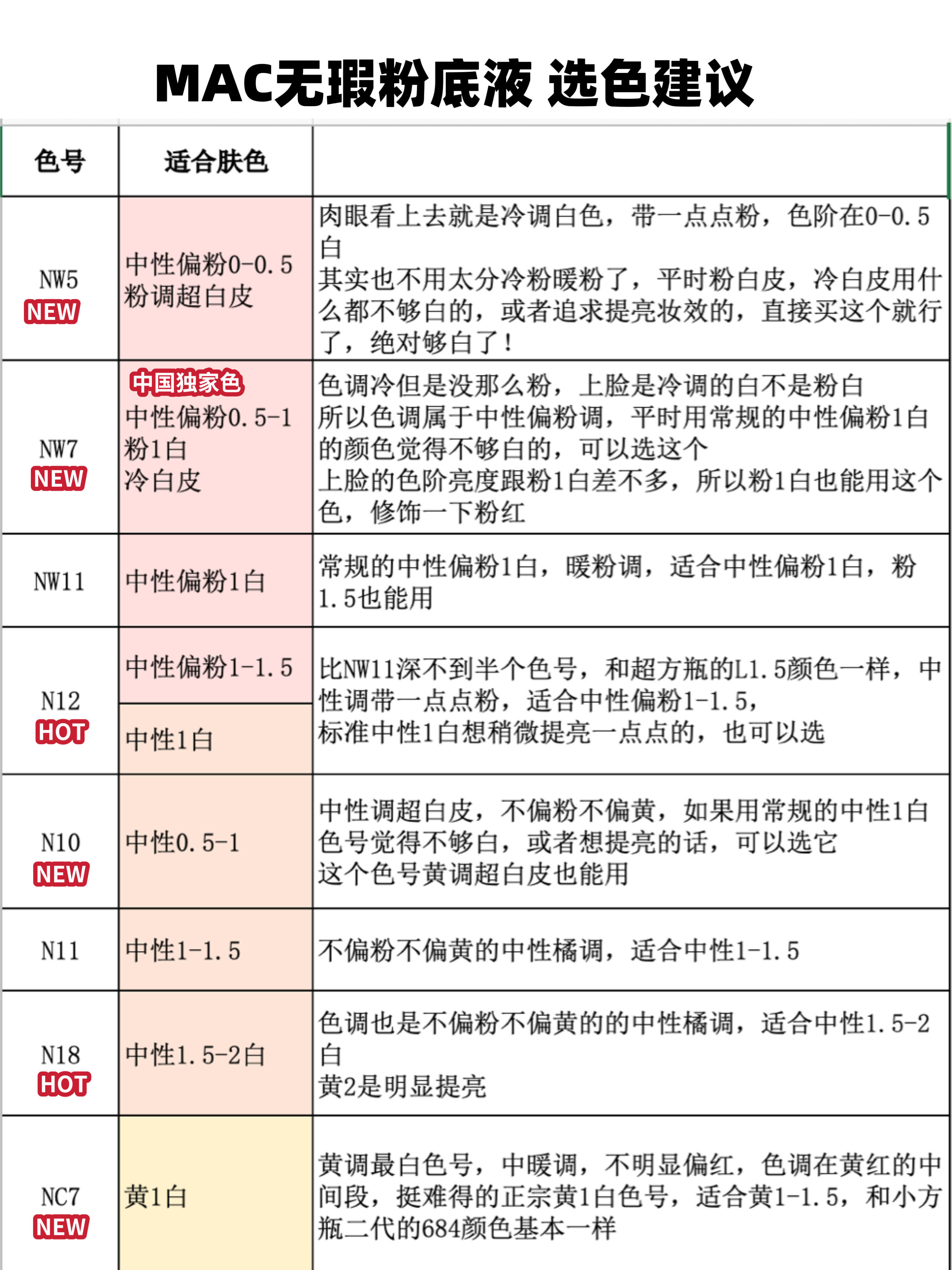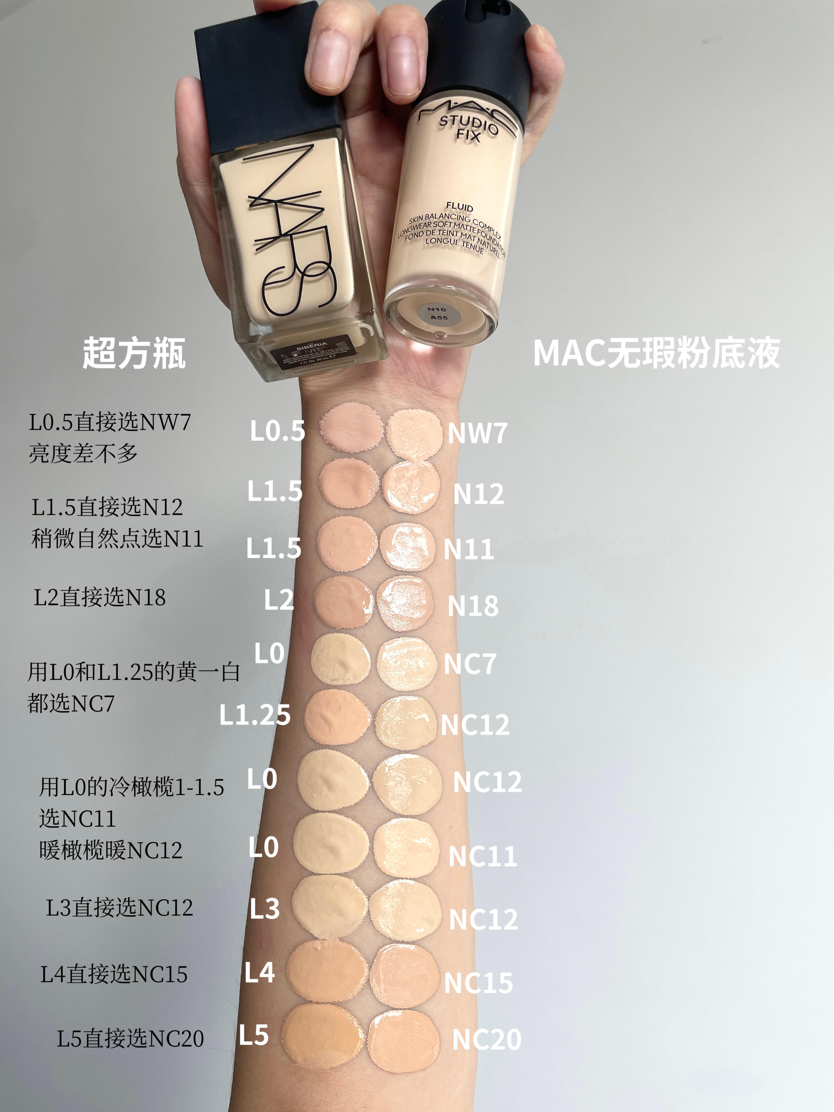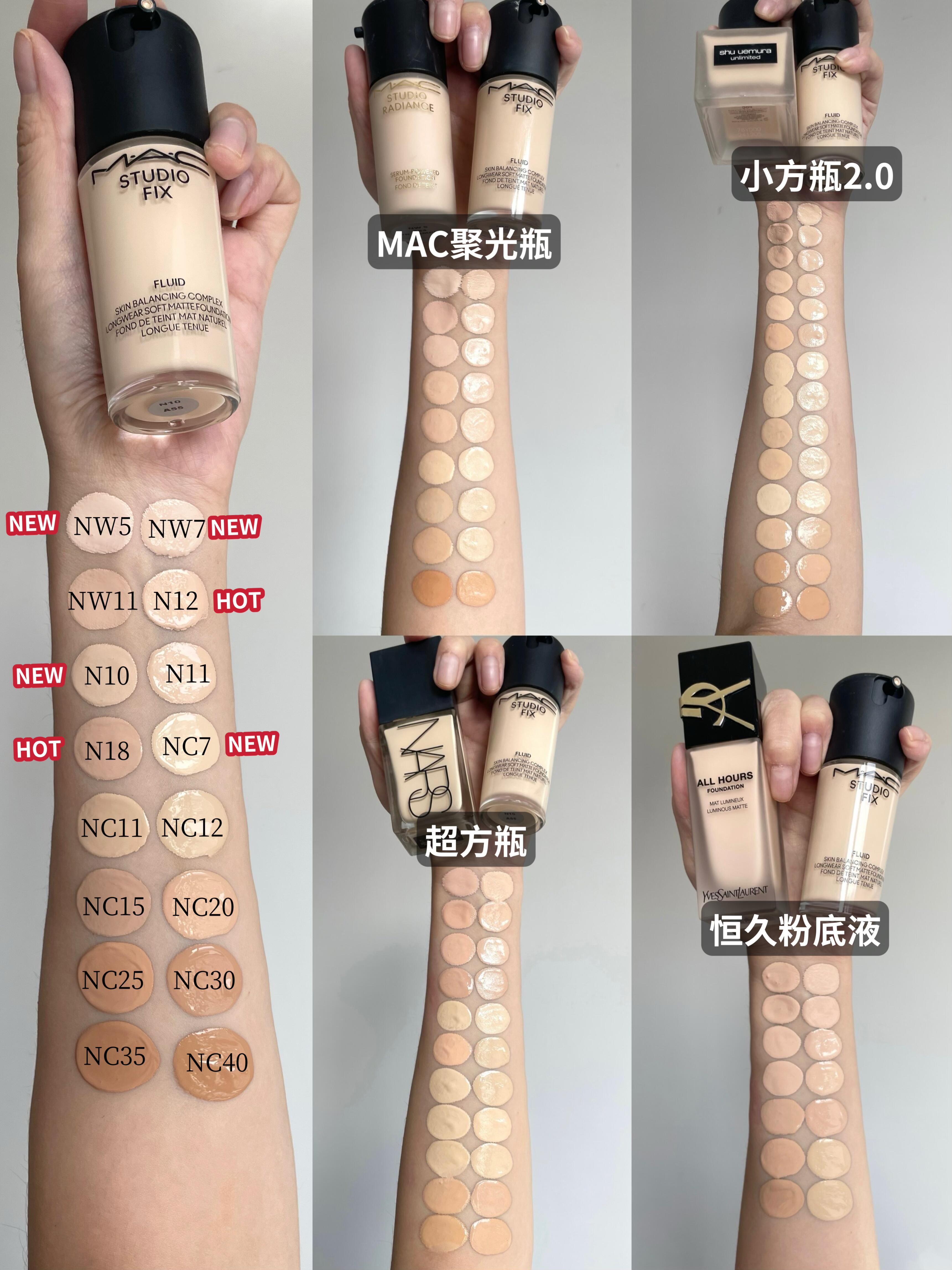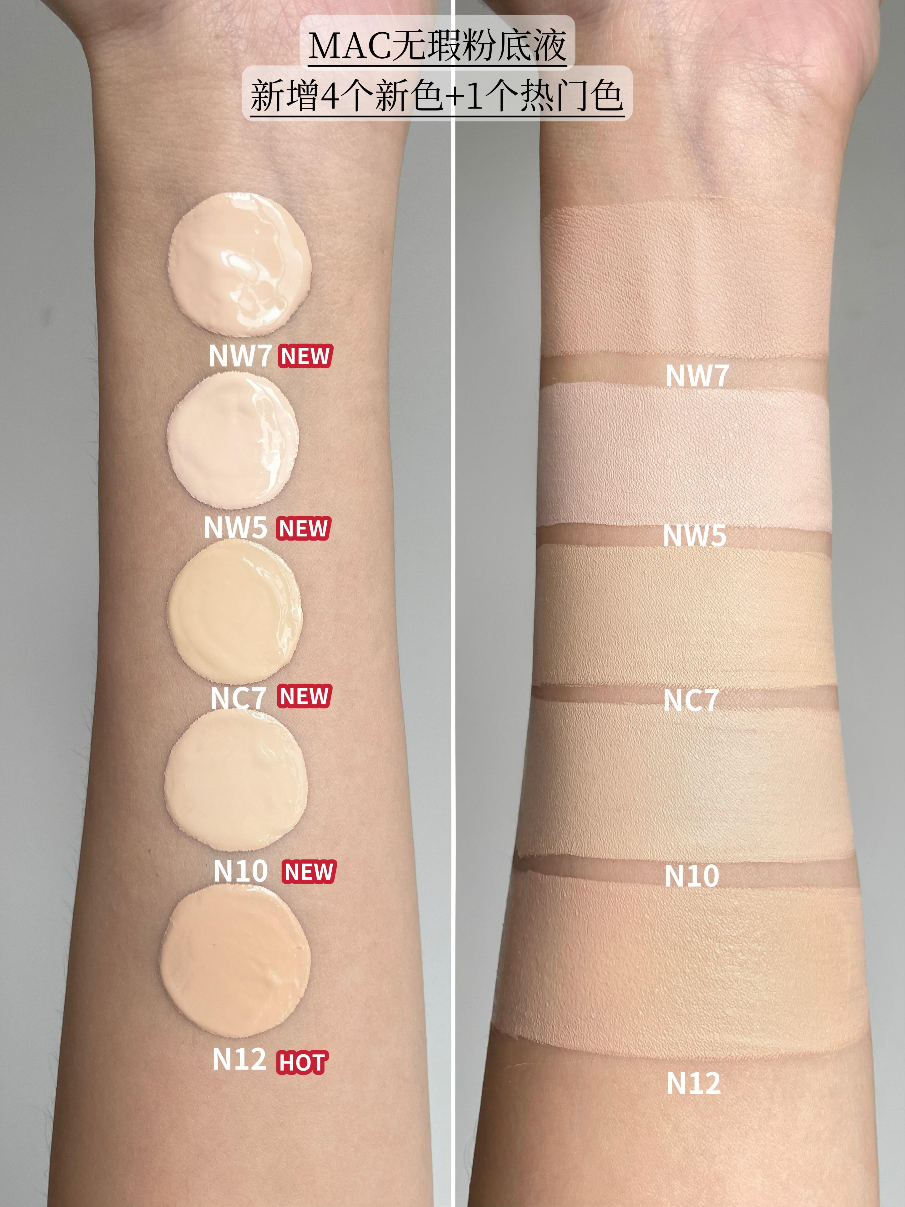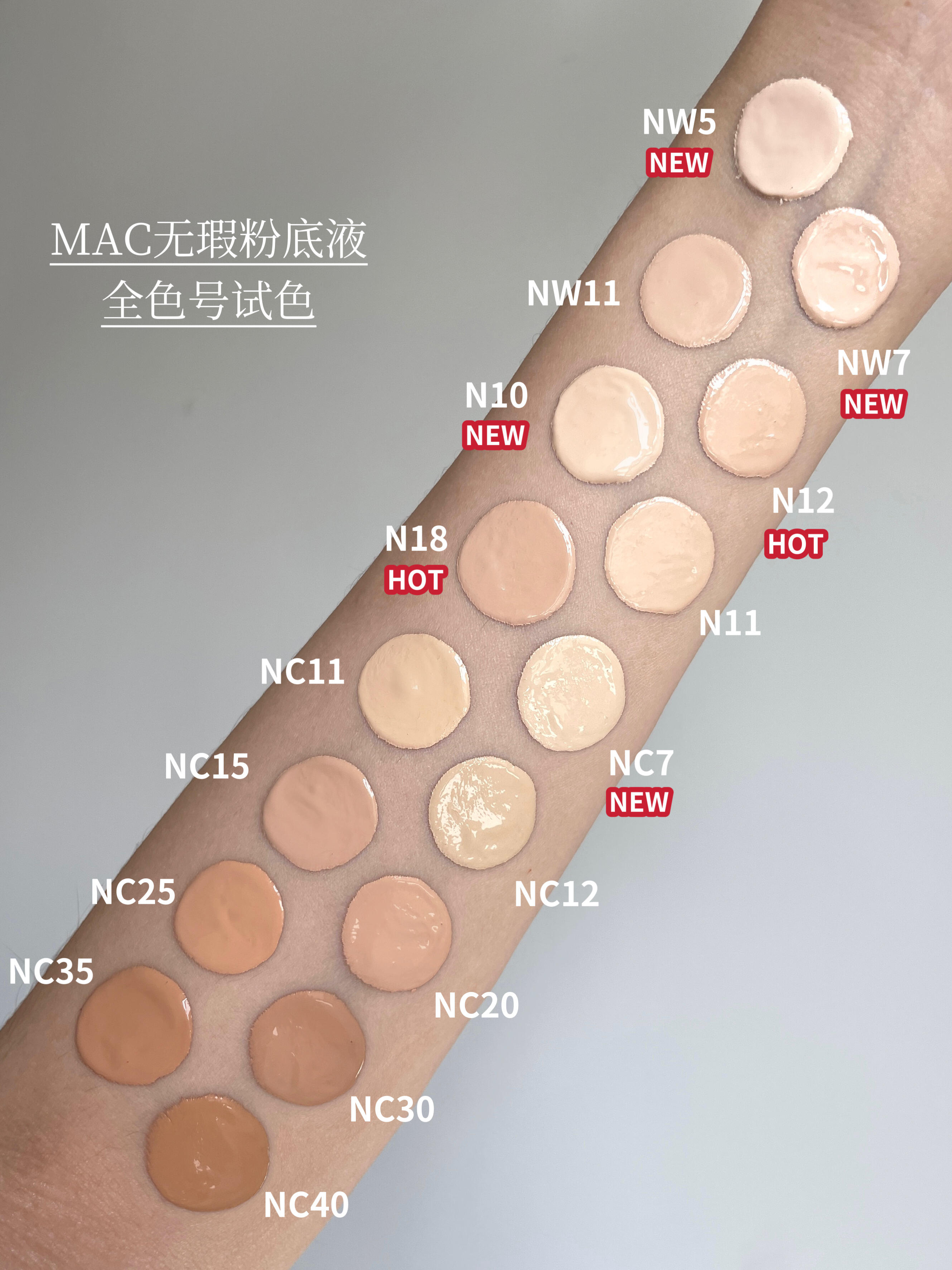 我X粉底用X色,MAC无瑕粉底液新色选什么色? MAC无瑕粉底液是我春夏很常用的持妆粉底液之一,特别适合油皮/混油瑕疵皮,这几年无数次安利,试色,测评 最近新出的4个适合亚洲人的新宠色号,补充了亮白色号空缺,完成从0-5,6个色阶跨度,从粉到冷橄榄完整色调轴,真正做到了绝大多数国人都能找到贴合自己肤色的色号,充分尊重了不同肤色差异。调色真的太专业了,也是很符合国人主流审美的自然提亮,不假白 不假面 很自然漂亮的白净感,不愧是专业彩妆品牌! 遮瑕力算是油皮粉底液中的尖子生,脸上的瑕疵一层基本都能遮住,毛孔都能柔焦磨皮,顽固瑕疵多次叠加不卡粉,混油鼻翼也不卡,雾面妆效,持妆更是没话说,夏季流汗完全不担心流白汤,妥妥的越夜越美丽妆效,持妆到深夜依旧不卡不脱不斑驳 粉调/中性偏粉调 NW5 NW7 NW11 N12 中性调 N10 N11 N12 N18 黄调 NC7 NC12 NC15 NC20 NC25 NC30 NC35 NC40 橄榄调 NC7 NC11 NC12 图片内所有色号都是我和朋友一起手臂试+上脸试过后给出的选色建议,通过手臂试色的方式呈现,我觉得这样更清晰直观,可以放心参考! #选色 #试色 #MAC无瑕粉底液 #无瑕热舞24H跳不脱 #MAC粉底液 #MAC油皮的神 #油皮粉底液 #天猫新品开挂了 |