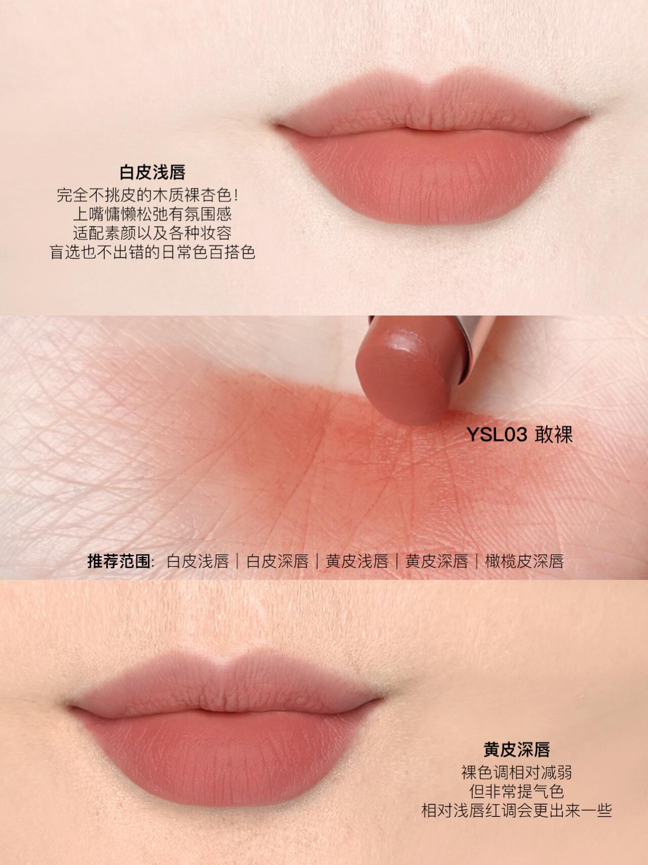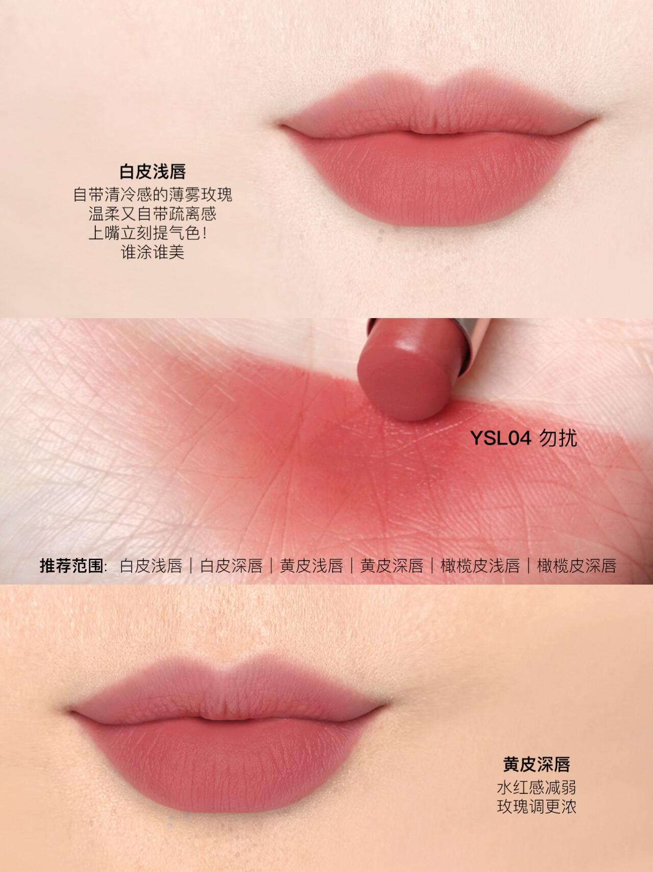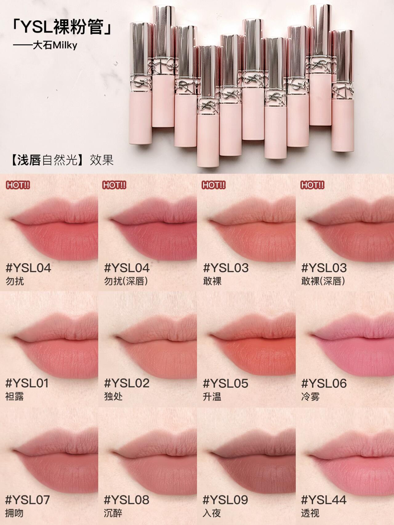 全新YSL裸粉管🩰十色全试色指南 报告!完全被YSL新品裸粉管拿捏! 质地超薄超贴唇舒服到离谱!“唇上内衣”是真的不夸张! 妥妥的 颜值+质地双在线!!! 膏体巨细腻,软fufu的超好晕开 上嘴贴唇感拉满,不拔干不卡纹 素颜/淡妆涂都毫无压力,舒适度直接拉满~ 全系低饱和裸色系 完美融合自身唇色 打造天生好气色的伪素颜唇妆! 10个色号,盲选不出错👇 💖YSL04 勿扰 薄雾玫瑰 💖YSL03 敢裸 木质裸杏 💖YSL07 拥吻 轻烟豆沙 🤍YSL01 袒露 🤍YSL02 独处 🤍YSL05 升温 🤍YSL06 冷雾 🤍YSL08 沉醉 🤍YSL09 入夜 🤍YSL44 透视 - 🎬信息: 时间 3.27~3.30 天气 晴☀ 光源 窗边自然光 色温中性 涂抹方式为渐变厚涂 ⚠️不同光源对颜色影响较大,灯光下会有不同 #ysl裸粉管 #ysl04#ysl03 #口红推荐 #素颜口红 #裸色口红 #好物分享 #口红测评 #显白口红 |