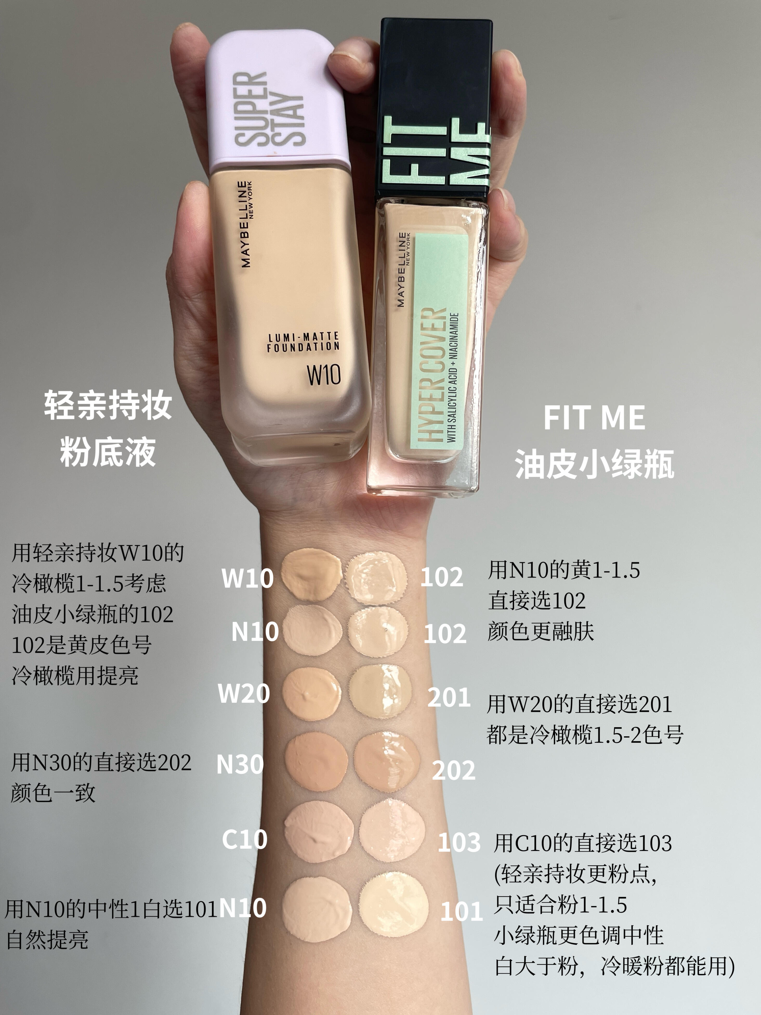 美宝莲油皮FITME上新!粉底液家族互选攻略 我是美宝莲20年的老用户了,上初中的时候买过一个BB霜就是美宝莲的,那也是我底妆产品的启蒙,后来上大学上班后,又用了FITME系列和轻亲持妆粉底液,都特别喜欢,很适合我混合肤质,质量远远超出价格,质价比的神 🤎新出的FITME油皮小绿瓶 虽然我是混合皮,但是我真的觉得特别好用,质地超出预期的好用!根本就没觉得像是在用油皮粉底,妆效是油皮喜欢的无瑕雾面妆效,干爽干练,刻板印象里油皮粉底液 为了控油 把粉质做的比较粗,妆感厚重,质地也很干。。这个是一点也没有,完全就是根据油皮平时喜好,专门为油皮量身定制的粉底 肤感我觉得和轻亲持妆差不多,粉质感觉特别细,一点也不干卡,质感特别柔和,既控油肤感又特别好,遮瑕力做的也挺高的,自带成膜防蹭质地,很扒脸 粉底液的气味我也很喜欢,特别像我小时候吃过的泡泡糖,清甜的薄荷味 特别清爽 也添加了油痘肌友好配方烟酰胺 水杨酸,达到水油平衡 不闷痘 持妆后也不卡粉不脱妆 🤍调色审美 是融肤级贴合的审美,如果能选到适合自己的色号,和肤色能特别融肤 和脖子没什么色差,打造伪素颜妆效,即使没有和肤色完全对应的色号,用相近的也能接受,不突兀 5个色号色调普适性都比较高,横跨几个色调都能用 并且对小众肤色特别友好,超白皮 橄榄皮也能有合适的色号 色号虽然不多,但提炼的都是精华 后续不怎么暗沉,选色按我建议的选就行,不需要额外选白 黄调 102.201.202 粉调 103 中性调101 做了一个FITME混皮小蓝瓶,轻亲持妆的互选攻略 所有色号都手臂试+上脸试过后给出的选色建议,通过手臂试色的方式呈现,我觉得这样更清晰直观,可以放心参考! 🤎美宝莲FITME混皮小蓝瓶 112.110.120 🤎美宝莲轻亲持妆粉底液 C10 N10 W10 W20 N30 #美宝莲FITME油皮小绿瓶 #美宝莲FITME粉底液#美宝莲轻亲持妆粉底液 #油皮粉底液推荐 #痘痘肌 #油痘肌粉底液 |